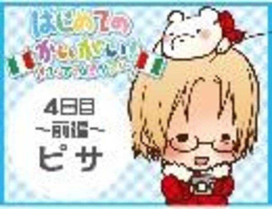 あけおめです!とってもおひさしぶりです!!間があきましたが続編うpします〜!あいかわらずのろのろ更新ですが、今年もよろしくお願いします…!おまけつけたら、動画の半分くらいおまけになりました(笑) しかも伊旅行と関係ない(ぇ) 伊旅行楽しみにしてくださってる方すいません^^; 少しでも楽しんでいただければ幸いです〜。 お借りしたBGM→s.m5403687様 3(後編)→<a href="https://www.nicovideo.jp/watch/nm11762867" class="watch">nm11762867</a> 1→<a href="https://www.nicovideo.jp/watch/nm10111546" class="watch">nm10111546</a> 今まで作ったもの→<a href="https://www.nicovideo.jp/mylist/18196625" target="_blank" rel="noopener">mylist/18196625</a> ■追記■たくさんの視聴&コメ(ニコレポにまで!)ありがとうございます!*^^* 市場wwwひいいジーマミーの誘惑がwww 褌>反応ありがとうございますwww女物の水着着せるわけにはいかなかったのでw無駄にパタパタしますwww 宣伝>あわわ/// ありがとうございます!! ■追記■4日目中編できました!→ <a href="https://www.nicovideo.jp/watch/nm13384800" class="watch">nm13384800</a>