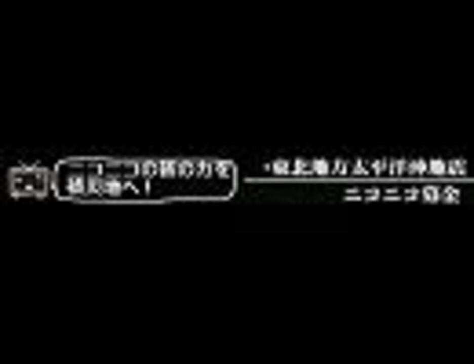 <font size="+1"><b>☆ニコニコ募金は終了しました☆</b></font><br>このニコ割を使用していただき、ありがとうございました。外してもらって構いません。<br><br>使って頂いた動画を纏めました→<a href="https://www.nicovideo.jp/mylist/19991500" target="_blank" rel="noopener">mylist/19991500</a><br>主が探したものなので、抜け落ちているものがあります。報告していただけたらありがたいです。<br><br>静止画・無音です。<br><br><font color="red">投稿者コメントで、クリックすると募金を受け付けている動画(<a href="https://www.nicovideo.jp/watch/sm13848574" class="watch">sm13848574</a>)にジャンプさせることができます。</font><br>-------投稿者コメントでの記述方法。以下の文を自分の動画の投稿者コメントとしてコメントすれば、このニコ割が使用できます-------<br><br><font size="+1">@CM <a href="https://www.nicovideo.jp/watch/nm13849206" class="watch">nm13849206</a> 再生 <a href="https://www.nicovideo.jp/watch/sm13848574" class="watch">sm13848574</a></font>