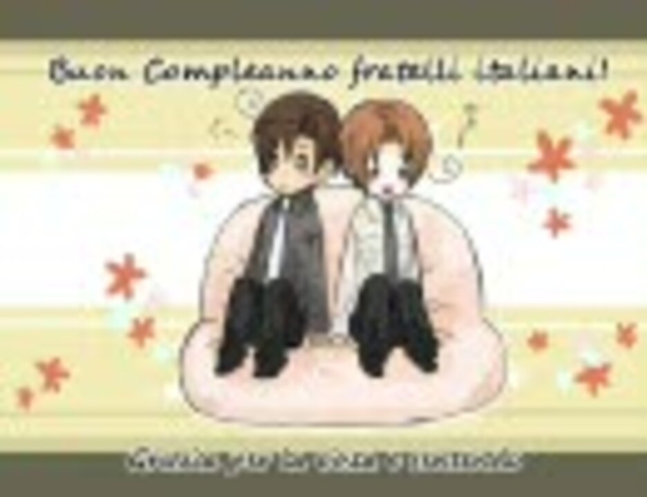 日本の時と同じ3曲構成です。扱いに差がある気がするって? 気のせいだよ!<br /><br />歌 :1人枢軸の人(<a href="https://www.nicovideo.jp/mylist/14416483" target="_blank" rel="noopener">mylist/14416483</a>)<br />歌詞:さすけね。の人(<a href="https://www.nicovideo.jp/mylist/15826532" target="_blank" rel="noopener">mylist/15826532</a>)<br />絵 :shiki(<a href="https://www.nicovideo.jp/mylist/15721505" target="_blank" rel="noopener">mylist/15721505</a>)<br /><br />後半2曲は動画をお借りしました。元動画様は投稿者コメントで記してあります。<br /><br />宣伝ありがとうございました!<br />3:17からのコメントにもじんわりと心が温かくなれました。やっぱりコメントで動画を彩れるのって素敵ですね。<br />温かいコメントに囲まれて、兄弟だけでなくうp主たちも幸せです。ありがとうございます。<br /><br />しかしエコノミー症候群だと…! <br />7:10頃から何かが乱れます、申し訳ありません。本編に障りないのが不幸中の幸いと言ったところでしょうか…。<br />どうやったら回避できるんだろう。
