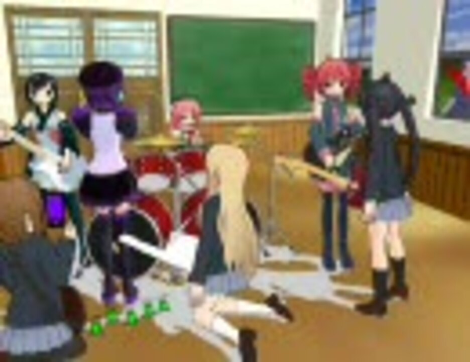 warioB2さんの<a href="https://www.nicovideo.jp/watch/sm9256574" class="watch">sm9256574</a>を真似して演奏してみた。使用楽曲はCagayake!GIRLS、Happy!? Sorry!!、Don't say “lazy”、Sweet Bitter Beauty Song、ふわふわ時間(タイム)、翼をください 、ギー太に首ったけ、Heart Goes Boom!!、Dear My Keys ~鍵盤の魔法~、『レッツコ゛ー』、カレーのちライス、わたしの恋はホッチキス、ふでペン ~ボールペン~。歌はデフォ子、重音テト、和音マコ、桃音モモ。ツールはMikuMikuDance5.22、つんでれんこ2.31、モデルはななみさんモデル、かこみきさんモデル、ジュラル星人などを使わせていただきました。一応のストーリーは、<a href="https://www.nicovideo.jp/watch/sm9682772" class="watch">sm9682772</a>で殴り込んだデフォ子たちは律に怒られたのでご機嫌取りにこれを演奏した。そしたらなぜかカオスになった。うp主の頭が低スペックなため勘弁していただきたい。<a href="https://www.nicovideo.jp/mylist/18796729" target="_blank" rel="noopener">mylist/18796729</a>