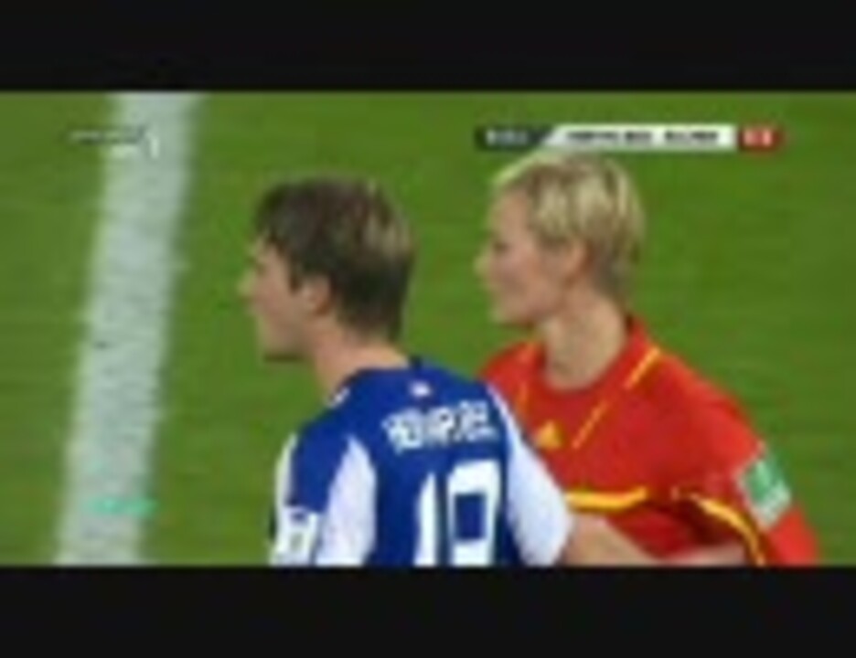 さり気なく女性審判の胸を触るサッカー選手