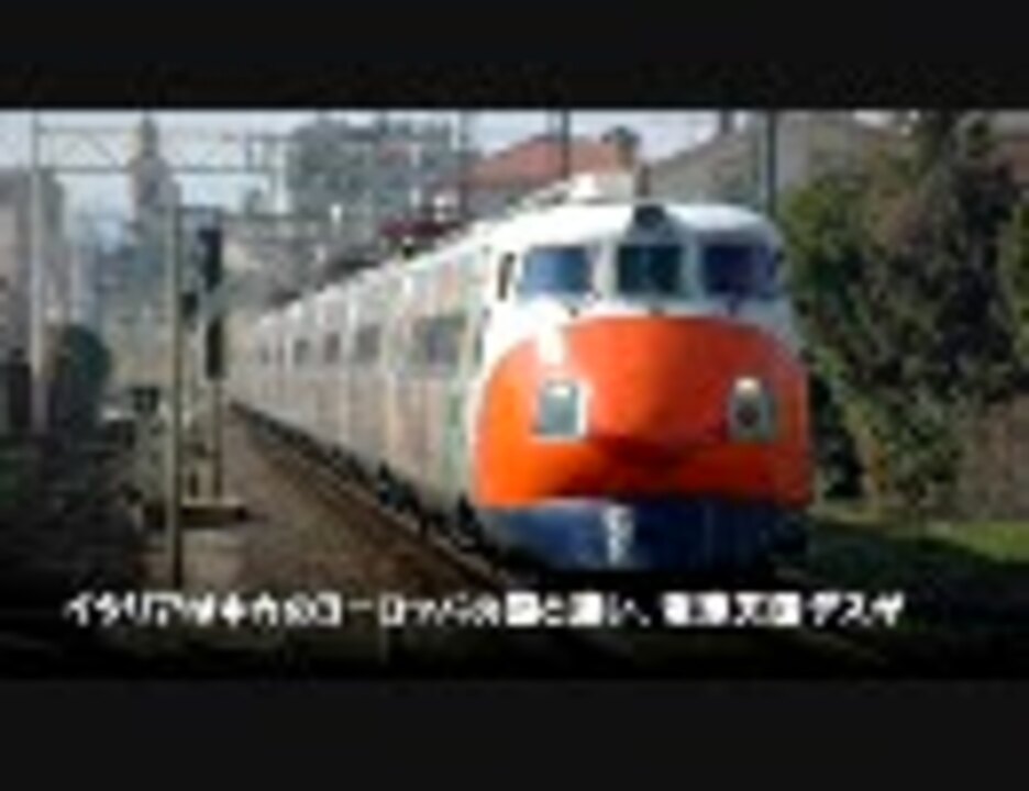 台湾の迷(?)車両の動画を作っていたはずなんですが、何故か完成したのは・・・<br />楽屋ネタ兼ちょっとした補足<a href="https://www.nicovideo.jp/watch/sm12929732" class="watch">sm12929732</a><br />補足:イタリアの優等列車の順序の説明がなく、分かりにくい部分がありました。<br />ユーロスター・イタリア(超特急)>ユーロスター・シティ(新設の特急)>インターシティ(在来線特急)という順になっています。<br />ユーロスター・シティは、列車の格、速度共にユーロスターとインターシティの中間的な存在でした…が<br />2011年11月末のダイヤ改正で、Frecciabiancaはユーロスターイタリアに格上げになったため、現在「ユーロスター・シティ」は消滅しています。<br />海外編新作 第25.5話 <a href="https://www.nicovideo.jp/watch/sm31011872" class="watch">sm31011872</a><br />■ 迷列車マイリスト<a href="https://www.nicovideo.jp/mylist/18434425" target="_blank" rel="noopener">mylist/18434425</a>■ 鉄道系マイリスト/<a href="https://www.nicovideo.jp/mylist/18642586" target="_blank" rel="noopener">mylist/18642586</a>