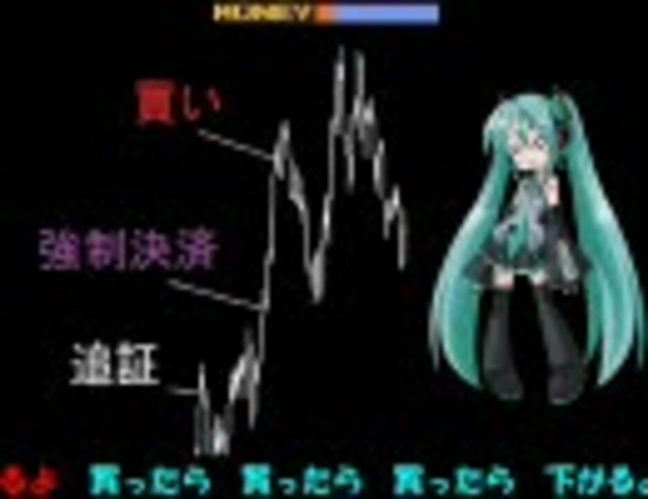 ・スパルタンXのBGMに歌詞を作ってミクさんに歌ってもらいました。<br>・グラフはフィクションなので、ドル円でもユーロドルでもご自由に想像して苦しんでください。<br> なお自分は株・日経先物メインでFXはほぼやらない(数回突っ込んで爆死)ので、<br> リアリティが無いかもしれませんがどうかご容赦ください。m(_ _)m<br>・動画作成にRip Sync2とさなり様のイラストを使わせて頂きました。どうもありがとうございました!<br><br>・前:曲がり道 <a href="https://www.nicovideo.jp/watch/sm9289910" class="watch">sm9289910</a> 次:領土をとりもどせ <a href="https://www.nicovideo.jp/watch/sm12703469" class="watch">sm12703469</a> 投資・時事MADうpリスト <a href="https://www.nicovideo.jp/mylist/31024428" target="_blank" rel="noopener">mylist/31024428</a><br><br>(追記)<br>・グラフを <a href="http://livedoor.blogimg.jp/zofy_doki_p/imgs/d/4/d4613edd.jpg" target="_blank" rel="noopener nofollow">http://livedoor.blogimg.jp/zofy_doki_p/imgs/d/4/d4613edd.jpg</a> で公開中です。(誰得)<br>(2019/6/9) やや変人†様、宣伝ありがとうございます!米中貿易戦争、どうなることやらですね…。