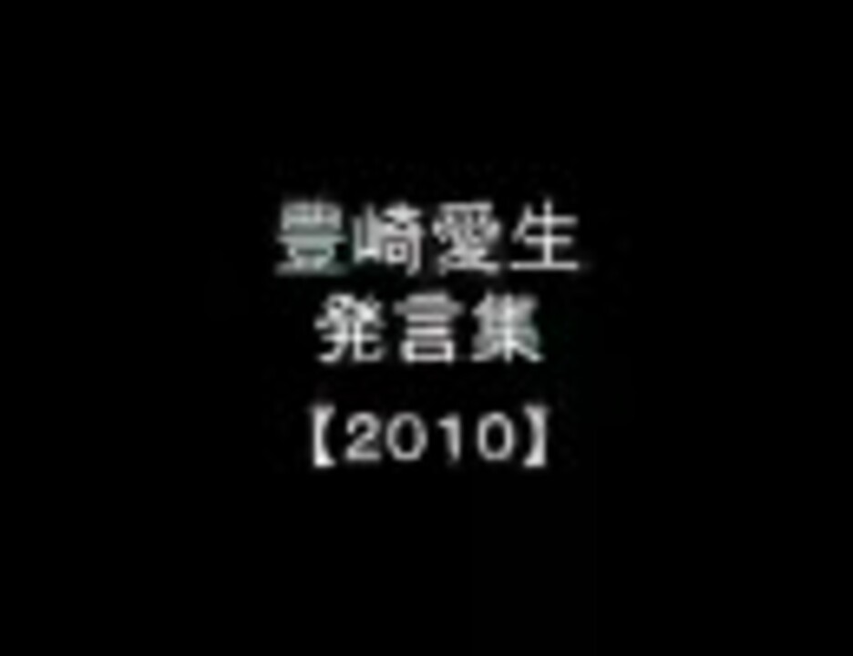 遅ればせながら、豊崎さんの24歳の誕生日のお祝いもかねまして、下手くそな編集ですが発言集なるものを作ってみました。 2010年まだ終わってないのにタイトルに入れるとか気がはやいってレベルじゃないですが、ここ一年くらいの豊崎さんの様々なトークをお楽しみください。 ソースのラジオは、超電磁砲・Which witch・クェイサー・大魔王・スフィア・おかえり等です。 都合によりらじおん!!は入れられませんでした; リスペクトしております→<a href="https://www.nicovideo.jp/watch/sm11136409" class="watch">sm11136409</a>