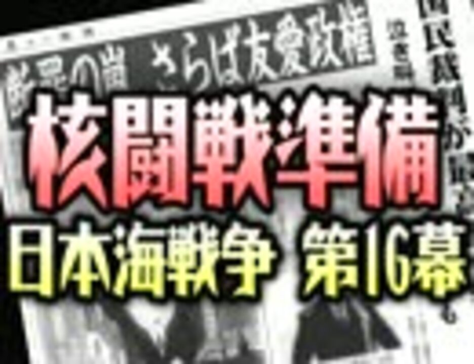 <b>さらば友愛内閣</b><br />201X年―日本は外圧に加えて友愛政権の愚挙で急速に弱体化、混迷の時代を迎えていた。朝鮮連邦が侵略を始めた時、祖国の危機を憂える超党派「国防委員会」が遂にクーデターを強行!しかし、売国のツケは予想以上に大きかった!<br />■動画は完全厨二妄想型全手動架空戦記風ゲームドラマです。<br />他の動画は→ 2 <a href="https://www.nicovideo.jp/mylist/6489723" target="_blank" rel="noopener">mylist/6489723</a> 3 <a href="https://www.nicovideo.jp/mylist/15108150" target="_blank" rel="noopener">mylist/15108150</a> 【前<a href="https://www.nicovideo.jp/watch/sm12370608" class="watch">sm12370608</a> 後半<a href="https://www.nicovideo.jp/watch/sm12834666" class="watch">sm12834666</a>】<br />■<b>動画上部の解説コメントも参考にしてネ。</b><br />■<b>co9778</b>では、動画のお知らせや交流を行っています♪<br />□<b>この動画は第16幕“前半”です。後半もあります。</b><br />□友愛政権の愚挙については第3幕<a href="https://www.nicovideo.jp/watch/sm8366168" class="watch">sm8366168</a>を見た後なら数倍楽しめ(略。<br />□次回予告「ファッビョーンアタック!」