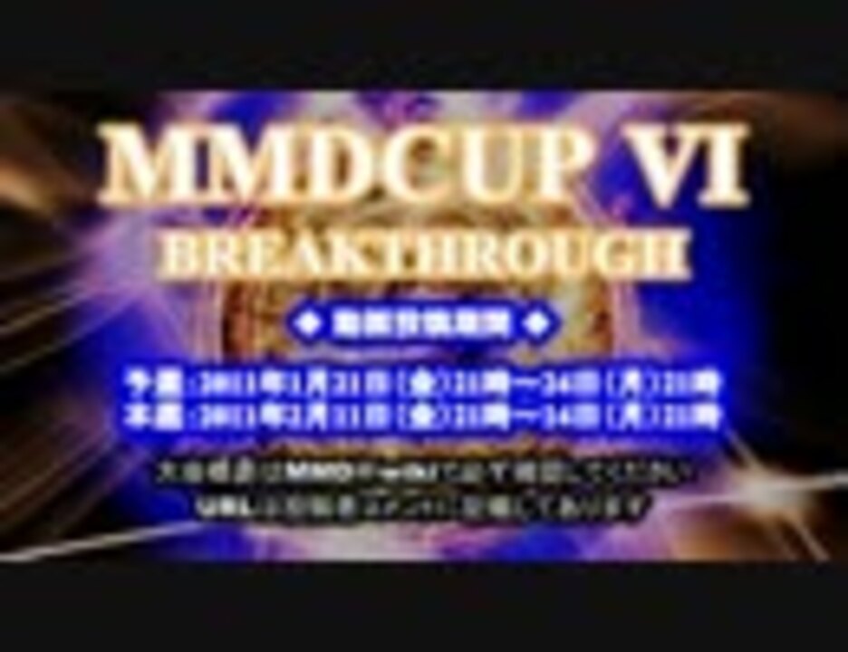 <font color="navy"><b>■大会サイト ⇒ </font><font color="red"><a href="http://www31.atwiki.jp/mmdcup/" target="_blank" rel="noopener nofollow">http://www31.atwiki.jp/mmdcup/</a></font></b><br /><font color="navy"><b>■第6回MMD杯日程など ⇒ </font><font color="red"><a href="http://www31.atwiki.jp/mmdcup/pages/169.html" target="_blank" rel="noopener nofollow">http://www31.atwiki.jp/mmdcup/pages/169.html</a></font></b><br /><br />Movie: 澪姉<br />Stage: カブッP + ヒノイ<br />MME Effect ( Aura Effect + Lens Flare): Beamman-P<br />Music: AVTechNO! "Darkness Six" + "6" + "6_UGL feat-kazune."<br /><font color="red"><b><a href="http://www.youtube.com/user/AVTechNO" target="_blank" rel="noopener nofollow">http://www.youtube.com/user/AVTechNO</a></b></font><br />Mix: 澪姉<br />Encode: つんでれんこ<br /><br /><font color="navy"><b>■第6回MMD杯ユーザーニコ割</b></font><br />@CM <a href="https://www.nicovideo.jp/watch/nm12914879" class="watch">nm12914879</a> 再生 dic/MMD杯<br />@CM <a href="https://www.nicovideo.jp/watch/nm12914879" class="watch">nm12914879</a> 再生 <a href="https://www.nicovideo.jp/watch/sm12919543" class="watch">sm12919543</a><br /><br /><b>MMD杯運営コミュに是非ご参加ください / co365910</b><br />