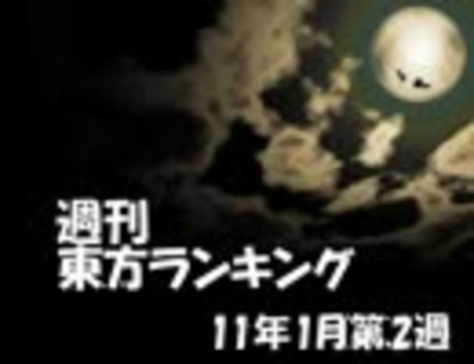 今週のプレイリスト[<a href="https://www.nicovideo.jp/mylist/23007875" target="_blank" rel="noopener">mylist/23007875</a>] ☆週刊東方ランキング一覧[<a href="https://www.nicovideo.jp/mylist/10450068" target="_blank" rel="noopener">mylist/10450068</a>]<br />[<a href="https://www.nicovideo.jp/watch/sm13218679" class="watch">sm13218679</a>]←先週 次週→[<a href="https://www.nicovideo.jp/watch/sm13330124" class="watch">sm13330124</a>]<br /><br />【集計期間】 1/1土) 0:00 - 1/8(土) 0:00<br />【集計方法】 ポイント数 = マイリスト数 + (再生数 ÷ 20)<br />【集計対象】 東方タグがついている作品、タイトルに東方が含まれる作品<br /><br />掲示板 → <a href="http://www2.atchs.jp/toho/" target="_blank" rel="noopener nofollow">http://www2.atchs.jp/toho/</a><br />データwiki → <a href="http://www39.atwiki.jp/tohoranking" target="_blank" rel="noopener nofollow">http://www39.atwiki.jp/tohoranking</a><br />エンドカード募集中!→ <a href="http://www5.atpages.jp/tohonico/joyful/" target="_blank" rel="noopener nofollow">http://www5.atpages.jp/tohonico/joyful/</a><br /><br />OP → <a href="https://www.nicovideo.jp/watch/nm13163864" class="watch">nm13163864</a><br />