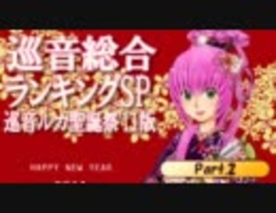 <font size=3><b>1/30は巡音ルカ聖誕祭'11!</b></font><br /><br />【集計対象】<br />09/01/01~11/01/25投稿の「巡音ルカ」関連動画<br />・タグ必須(「巡音新曲ランキング」準拠)<br />・「歌ってみた」は集計が正確に出来ないため今回は対象外です…。<br /><br />【集計方式】<br />11/01/26 00:00ころ集計<br />再生+コメント×3+マイリスト×15<br />(コメントのポイントは再生数が上限。マイリストがマイナスの場合0として計算)<br /><br />プレイリスト→<a href="https://www.nicovideo.jp/mylist/23515650" target="_blank" rel="noopener">mylist/23515650</a><br />Part1→<a href="https://www.nicovideo.jp/watch/sm13430379" class="watch">sm13430379</a> | 巡音新曲ランキング(るからん)はお休み中…バックナンバー→<a href="https://www.nicovideo.jp/mylist/11736333" target="_blank" rel="noopener">mylist/11736333</a><br /><br /><b>KarenT 巡音ルカ聖誕祭'11</b>→<a href="http://karent.jp/special/luka11" target="_blank" rel="noopener nofollow">http://karent.jp/special/luka11</a><br /><b>生放送</b><br />1/29 20:00~26:00 Happy 2nd birthday, Luka!!→<a href="https://live.nicovideo.jp/watch/lv38699718" target="_blank" rel="noopener">lv38699718</a>