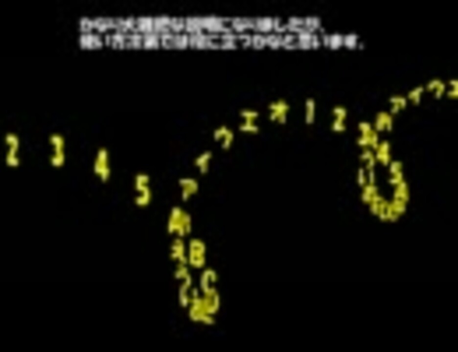 AviUtlの拡張編集で文字列を螺旋状に並べるためのアニメーション効果用luaスクリプトです。<br />詳細説明は動画および同梱のreadmeを見て下さい。<br /><br />2011.2.9追記<br /> 機能追加などを行なった新しいスクリプトを<a href="https://www.nicovideo.jp/watch/sm13546528" class="watch">sm13546528</a>で公開しましたので、そちらを使うようにして下さい。<br /><br />この動画で説明しているスクリプトファイル(非推奨ですが一応残しておきます。)<br /> → <a href="http://www1.axfc.net/uploader/File/so/58017.zip" target="_blank" rel="noopener nofollow">http://www1.axfc.net/uploader/File/so/58017.zip</a> <br /><br />■使用したツールのバージョン<br /> AviUtl 0.99i8 + 拡張編集 0.87d<br /><br />■参考<br /> ・AviUtl愛好会コミュ(co556462)<br /> ・さつきさんのユーザ記事 <a href="http://dic.nicovideo.jp/u/2787743" target="_blank" rel="noopener nofollow">http://dic.nicovideo.jp/u/2787743</a> <br />