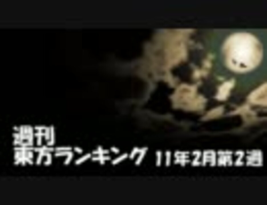 今週のプレイリスト[<a href="https://www.nicovideo.jp/mylist/23792463" target="_blank" rel="noopener">mylist/23792463</a>] ☆週刊東方ランキング一覧[<a href="https://www.nicovideo.jp/mylist/10450068" target="_blank" rel="noopener">mylist/10450068</a>]<br />[<a href="https://www.nicovideo.jp/watch/sm13520224" class="watch">sm13520224</a>]←先週 次週→[<a href="https://www.nicovideo.jp/watch/sm13657361" class="watch">sm13657361</a>]<br /><br />【集計期間】 2/5(土) 0:00 - 2/13(土) 0:00<br />【集計方法】 ポイント数 = マイリスト数 + (再生数 ÷ 20)<br />【集計対象】 東方タグがついている作品、タイトルに東方が含まれる作品<br /><br />掲示板 → <a href="http://www2.atchs.jp/toho/" target="_blank" rel="noopener nofollow">http://www2.atchs.jp/toho/</a><br />データwiki → <a href="http://www39.atwiki.jp/tohoranking" target="_blank" rel="noopener nofollow">http://www39.atwiki.jp/tohoranking</a><br />エンドカード募集中!→ <a href="http://www5.atpages.jp/tohonico/joyful/" target="_blank" rel="noopener nofollow">http://www5.atpages.jp/tohonico/joyful/</a><br /><br />月刊東方自作アレンジランキング 11年1月号 → <a href="https://www.nicovideo.jp/watch/sm13473068" class="watch">sm13473068</a><br />月刊新作東方手書きランキング 2011年1月号 → <a href="https://www.nicovideo.jp/watch/sm13484030" class="watch">sm13484030</a><br />