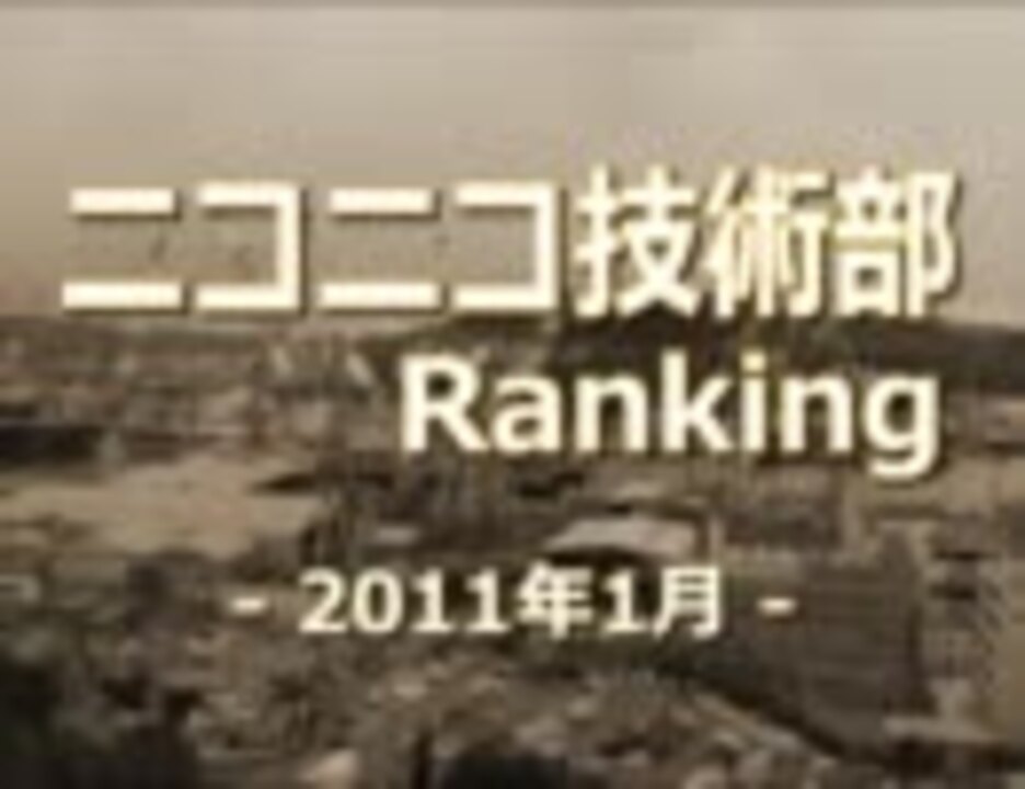 ニコニコ技術部ランキングです。2011年1月にアップロードされ「ニコニコ技術部」でタグ検索でhitした動画のランキングです。「マイリスト率」を重視したポイント集計となっています。<br />先ほど気づいたのですが、当ランキングの動画記事が7つほど存在していました。記載いただきましてありがとうございます。<br /><br />紹介させていただいた動画 <a href="https://www.nicovideo.jp/mylist/24478755" target="_blank" rel="noopener">mylist/24478755</a><br />ニコニコ技術部ランキングシリーズ <a href="https://www.nicovideo.jp/mylist/20900385" target="_blank" rel="noopener">mylist/20900385</a><br />2010年12月 <a href="https://www.nicovideo.jp/watch/sm13556618" class="watch">sm13556618</a> < 2011年1月(本動画) > 2011年2月 <a href="https://www.nicovideo.jp/watch/sm14349747" class="watch">sm14349747</a>