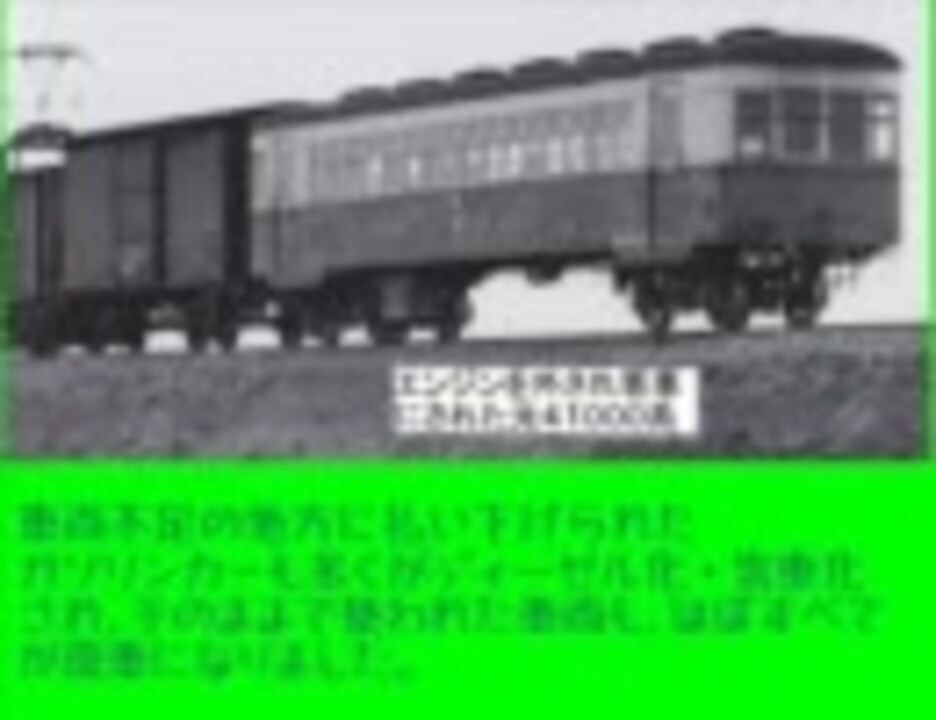 <b>後編は西成線転覆火災事故を中心に戦中・戦後の話を扱っています。</b><br />現在のJRゆめ咲線こと西成線で起きた悲劇は、単なるガソリンの危険性や作業員の失態ではなく、様々な要因が積み重なった末に発生した<u>起きるべくして起きた</u>事故でした。<br /><b>前編:<a href="https://www.nicovideo.jp/watch/sm14427753" class="watch">sm14427753</a><br /></b><b>【私見】</b>西成線事故の詳細を調べてみると、福知山線脱線事故(2005)とあまりにも共通点が多いことを知り愕然としました。<br /><b>事故を起こすのは人間ですが、同時に事故を防げるのも人間です。</b><br />だからこそ、運輸事業者には安全輸送を何よりも優先させて意識していただきたいものです。</b>