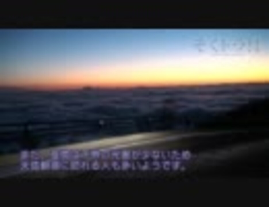 【エントリーNo.11】<br />富士山はその標高から天気が変わりやすく、また晴天に恵まれることも<br />3割程度しかないため、下界まで見渡せるのは運良く晴れたときのみです。<br />雲海はさらに低確率で発生するので、まさに神のみぞ知る世界。<br /><a href="https://www.nicovideo.jp/watch/sm14561090" class="watch">sm14561090</a> No.10←[オスドラ2011]→No.12 <a href="https://www.nicovideo.jp/watch/sm14577692" class="watch">sm14577692</a><br />撮影日 :2010年11月27日<br />使用機材 :SONY HDR-XR500<br />編集ソフト:Adobe After Effect CS5<br />エンコード:aviutl<br /><br /><a href="https://www.nicovideo.jp/watch/sm14217715" class="watch">sm14217715</a> 日光編 ←[現在地] → 秋の信州と安房峠 <a href="https://www.nicovideo.jp/watch/sm14711595" class="watch">sm14711595</a><br />■そくドラ!本編→<a href="https://www.nicovideo.jp/mylist/17678713" target="_blank" rel="noopener">mylist/17678713</a> ■そくドラ!番外編→<a href="https://www.nicovideo.jp/mylist/20177079" target="_blank" rel="noopener">mylist/20177079</a><br />■そくドラ!外縁隊→<a href="https://www.nicovideo.jp/mylist/19833475" target="_blank" rel="noopener">mylist/19833475</a> ■その他→<a href="https://www.nicovideo.jp/mylist/18497692" target="_blank" rel="noopener">mylist/18497692</a><br />■ そくドラ!コミュ→co265782 ■静岡車載動画コミュ→co207517