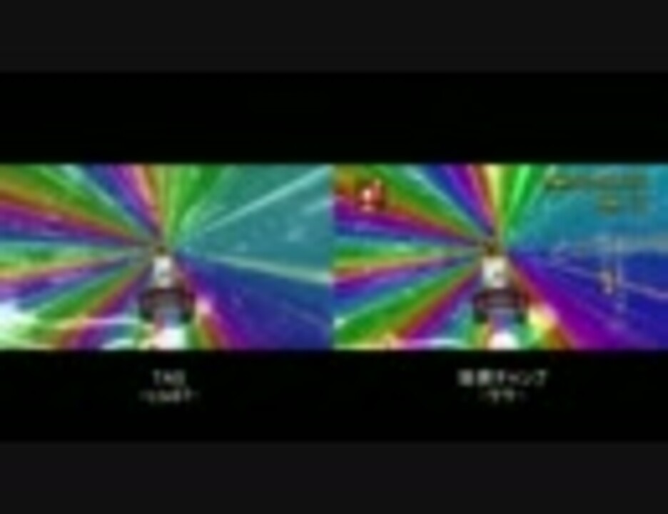 TAS(kart) -Ltx87-<br />LAP1 48.977<br />LAP2 48.768<br />LAP3 48.714<br />TIME 2:26.459<br /><br />世界チャンプ -ケケ- (JPN)<br />LAP1 48.920<br />LAP2 48.853<br />LAP3 48.933<br />TIME 2:26.766<br /><br />左の画面(TAS)はキノコ表示がありませんが、チャンプ同様スタートライン直後に使用しています。<br /><br />TAS(bike)レインボーロード最速動画<br /><a href="http://www.youtube.com/watch?v=cIOTjqvtyno" target="_blank" rel="noopener nofollow">http://www.youtube.com/watch?v=cIOTjqvtyno</a><br /><br />■TAS vs 世界チャンピオン:<a href="https://www.nicovideo.jp/mylist/25820391" target="_blank" rel="noopener">mylist/25820391</a><br />
