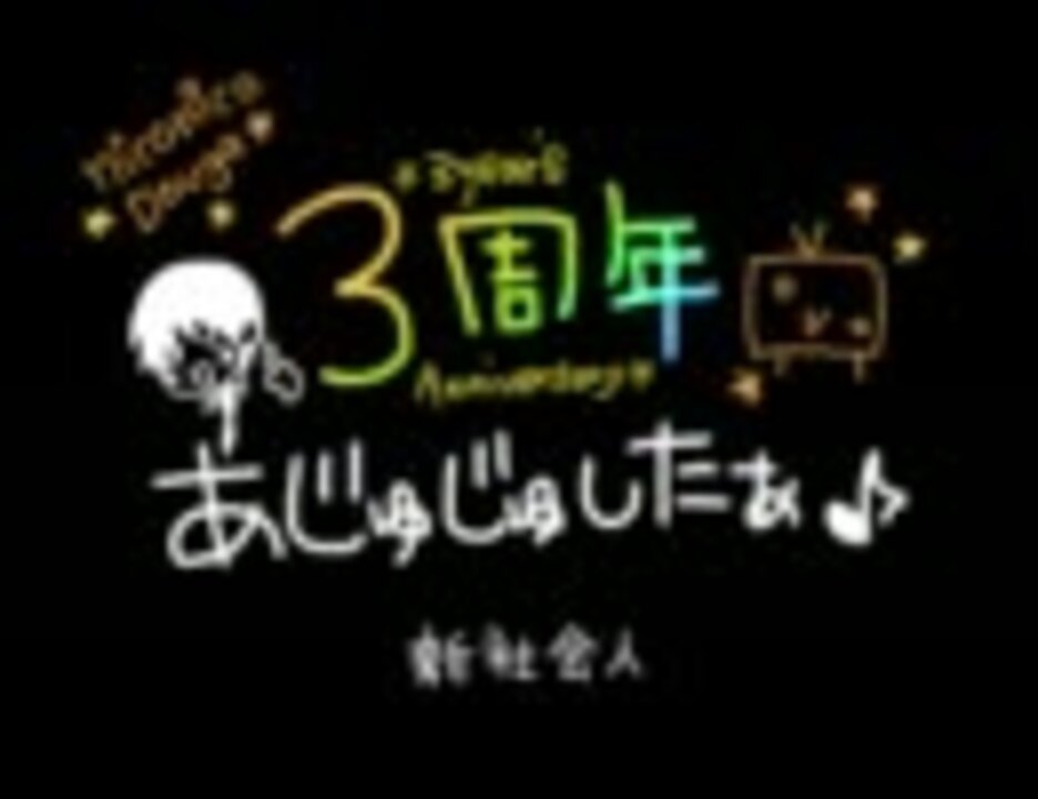 素人のヘッタクソな歌を聞いてくれて、本当にありがとうございます。<br />去年みたいに色々やりたかったけど、忙しくてそれどころではありませんでしたw<br /><br />こんなにたくさんの方に聞いてもらえる立場になるとは思ってもいませんでした。<br />このアカペラ動画を聞いておわかりのように、僕は実力のある歌い手ではありません。<br />ただの歌好きのサラリーマンがライブやCDに誘って頂いたりと普通では考えられない話です。<br />そんなとてもいい経験をさせてもらっているのも、皆さんが応援してくれているからだと思います。<br /><br />3年間も歌わせて頂いて、心からあじゅじゅした♪<br /><br />使用音源→<a href="https://www.nicovideo.jp/watch/sm4449851" class="watch">sm4449851</a><br />歌ったボカロ曲→<a href="https://www.nicovideo.jp/watch/sm11224129" class="watch">sm11224129</a>/絵師じゃないKEI様 <a href="https://www.nicovideo.jp/watch/sm9809880" class="watch">sm9809880</a>/梨本うい様 <a href="https://www.nicovideo.jp/watch/sm2528674" class="watch">sm2528674</a>/みなと様<br />イラスト/いび