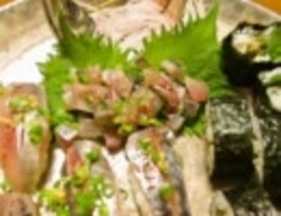 レシピ <a href="http://recipe.gourmet.yahoo.co.jp/943131311480861/" target="_blank" rel="noopener nofollow">http://recipe.gourmet.yahoo.co.jp/943131311480861/</a><br />コミュニティ:co1105383 マイリスト:<a href="https://www.nicovideo.jp/mylist/23892962" target="_blank" rel="noopener">mylist/23892962</a><br /><br />鯵と夏野菜の中巻き編はこちら:<a href="https://www.nicovideo.jp/watch/sm15137044" class="watch">sm15137044</a> 特選動画:<a href="https://www.nicovideo.jp/mylist/27326728" target="_blank" rel="noopener">mylist/27326728</a><br /><br />【参考原価】<br />鯵4尾 200円 、ご飯3合 133円、大葉14枚 120円、大根1/8本 20円胡瓜1本 30円、茄子1本 30円、茗荷2本 60円、海苔3枚 40円<br />合計533円(4人前) 1人前133円 <br /> 2011年7月9日(土) 夕食<br /><br /><br />刺身シリーズ:<a href="https://www.nicovideo.jp/mylist/33713366" target="_blank" rel="noopener">mylist/33713366</a><br /><br />