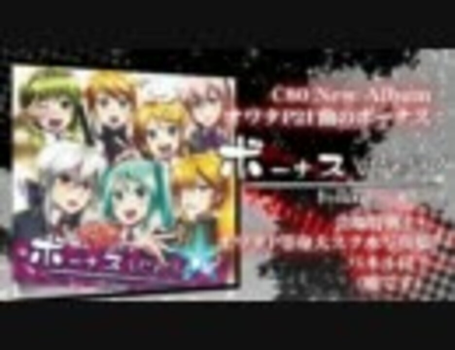 オワタPです。4thアルバム「ボーナス\(^o^)/」のクロスフェードです。<br />みなさんの耳には、どう聴こえるのでしょうか。<br /><br /><font color="red">■</font> オワタP - <a href="https://www.nicovideo.jp/mylist/3236873" target="_blank" rel="noopener">mylist/3236873</a><br /><font color="orange">■</font> CD特設ページ - <a href="http://garunan.com/bonus.html" target="_blank" rel="noopener nofollow">http://garunan.com/bonus.html</a><br />企画・デザイン:ガルナ/オワタP イラスト:鴨。CAFFEIN マスタリング:Dios/シグナルP<br />Thanks:縣 ひの ゆーりん 睦月さお cosMo とく アトラ ハバネロ炒飯 副団長 sezu 田村ヒロ ラマーズP びびあん 織生あや 三重の人<br /><br /><font color="orange">■</font> 委託先 - <a href="http://goo.gl/3WfUX" target="_blank" rel="noopener nofollow">http://goo.gl/3WfUX</a> (とらのあな) <a href="http://goo.gl/l2AUp" target="_blank" rel="noopener nofollow">http://goo.gl/l2AUp</a> (アニメイト) 他