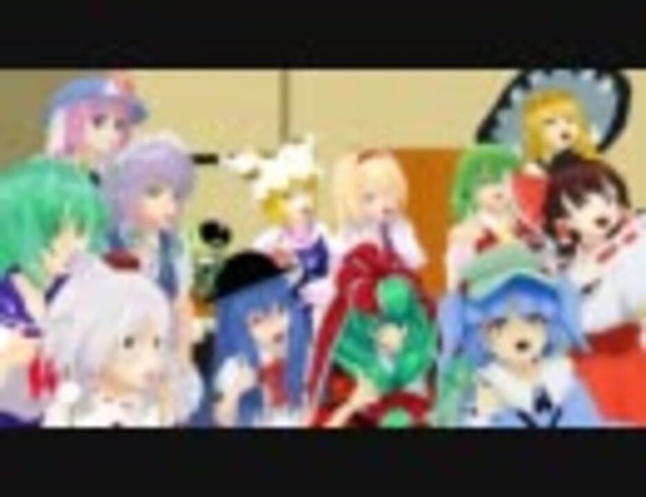 <font size="6">全てのモデラー様<br />モーション配布して下さっている方々に<br />最大限の感謝と敬意を!<br /></font>文字数オーバーで動画リンク出来なかったorz<br /><br />お借りした物<br />えと式犬走椛/えと様<br />東風谷早苗セーラー服/東方カス子シリーズ様<br />十六夜咲夜/アールビット様<br />西行寺幽々子 永夜抄版/zakoneko様<br />比那名居天子_alva改造版/alva様・ペパーミント様<br />鍵山雛(改)/BEn様・ぷれでたぁ様<br />八雲藍/Kome-ken様<br />にがもん式アリス/にがもん様・nakao様・しえら様<br />河城にとりN/nya様<br />博麗霊夢/ISAO様・sera様<br />幽香/モンテコア様・ぷれでたぁ様・min.様<br />霧雨魔理沙/ルシール様<br />簡易ソフトシャドウ/ビームマンP様<br />PMDエディタ/極北P様 つんでれんこ/窓屋様<br /><br />元凶様/kiyop様 <a href="https://www.nicovideo.jp/watch/sm15356644" class="watch">sm15356644</a> 元ネタ様/<a href="https://www.nicovideo.jp/watch/sm8190499" class="watch">sm8190499</a>