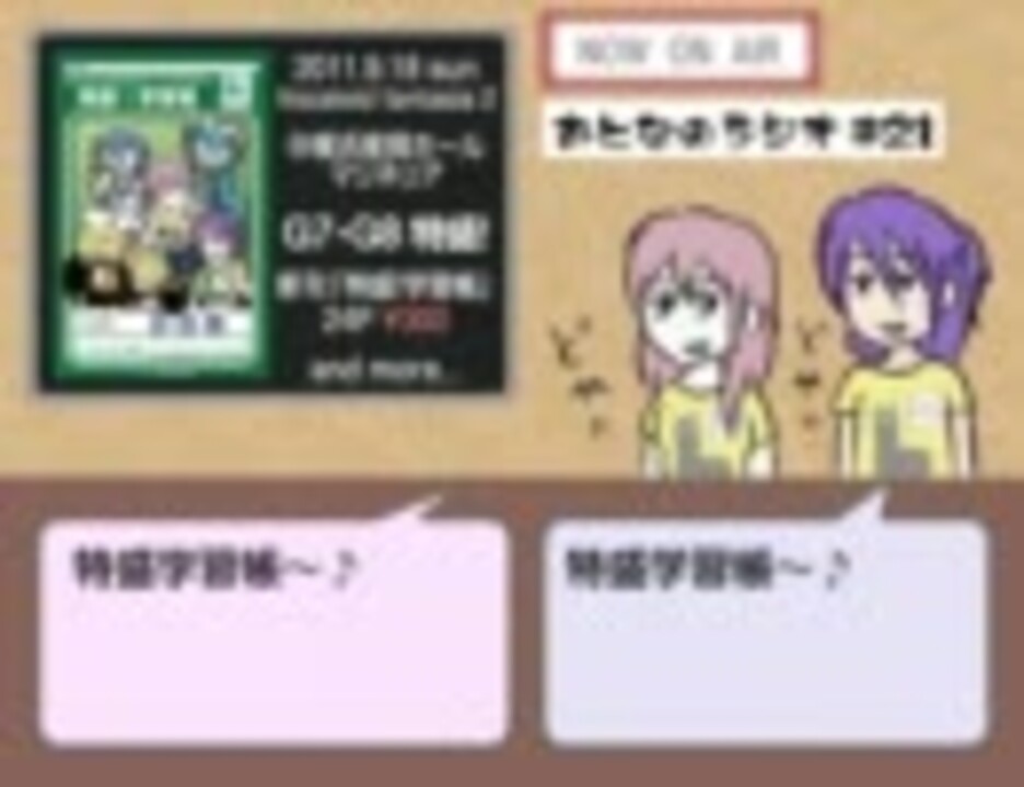 予定より大幅に遅れて投稿…ごめんね。<br />時間なかったから絵も適当DAYO!!<br /><br />新コーナー考えました!&動画内で、お便りについてしっかり説明しているので、参考にしてくださいね。<br /><br />フリー音楽素材 Senses Circuit<br /><u><a href="http://www.senses-circuit.com/" target="_blank" rel="noopener nofollow">http://www.senses-circuit.com/</a></u><br /><br />10/20 特盛学習帳、通販開始!<a href="http://bit.ly/oVzE8L" target="_blank" rel="noopener nofollow">http://bit.ly/oVzE8L</a><br /><br />●OP<a href="https://www.nicovideo.jp/watch/sm14531196" class="watch">sm14531196</a> ●紹介<a href="https://www.nicovideo.jp/watch/sm9583688" class="watch">sm9583688</a> ●ED<a href="https://www.nicovideo.jp/watch/sm13262591" class="watch">sm13262591</a><br />■紹介曲<a href="https://www.nicovideo.jp/mylist/12512202" target="_blank" rel="noopener">mylist/12512202</a><br /><br /><font color="ff8800"><b>メールフォーム</b>→<u><a href="http://tinyurl.com/37bb6l6" target="_blank" rel="noopener nofollow">http://tinyurl.com/37bb6l6</a></u><br />イラストは<u>funkorogashi.music@gmail.com</u>へ。</font><br /><br /><a href="https://www.nicovideo.jp/watch/sm14138901" class="watch">sm14138901</a><<第20回記念放送(ゲスト:時空勇者タマデラス) 第22回>><a href="https://www.nicovideo.jp/watch/sm17186704" class="watch">sm17186704</a><br /><br />■おとラジ<a href="https://www.nicovideo.jp/mylist/11994464" target="_blank" rel="noopener">mylist/11994464</a> ■作品集<a href="https://www.nicovideo.jp/mylist/11700307" target="_blank" rel="noopener">mylist/11700307</a><br />■twitter<u>scarabee</u> ■ブログ<u><a href="http://www.voiceblog.jp/scarabee/" target="_blank" rel="noopener nofollow">http://www.voiceblog.jp/scarabee/</a></u>