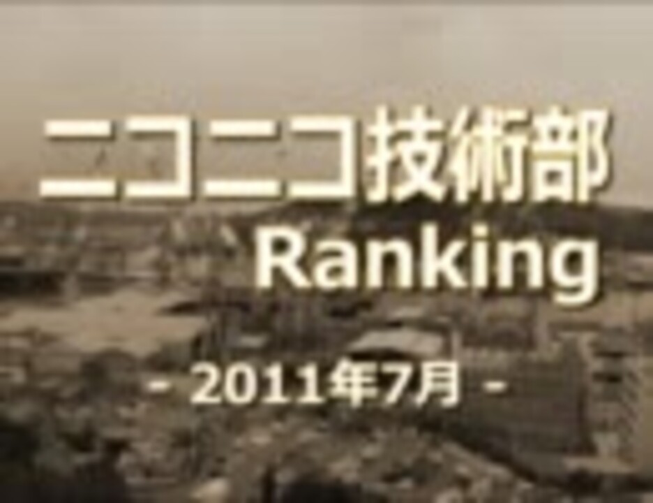 ニコニコ技術部ランキングです。2011年7月にアップロードされ「ニコニコ技術部」「MMD技術部」でタグ検索でhitした動画のランキングです。「マイリスト率」を重視したポイント集計となっています。<br /><br />紹介させていただいた動画 <a href="https://www.nicovideo.jp/mylist/27726423" target="_blank" rel="noopener">mylist/27726423</a> <br />ニコニコ技術部ランキングシリーズ <a href="https://www.nicovideo.jp/mylist/20900385" target="_blank" rel="noopener">mylist/20900385</a> <br />2011年6月 <a href="https://www.nicovideo.jp/watch/sm15298147" class="watch">sm15298147</a> < 2011年7月(本動画) > 2011年8月 <a href="https://www.nicovideo.jp/watch/sm16282350" class="watch">sm16282350</a>