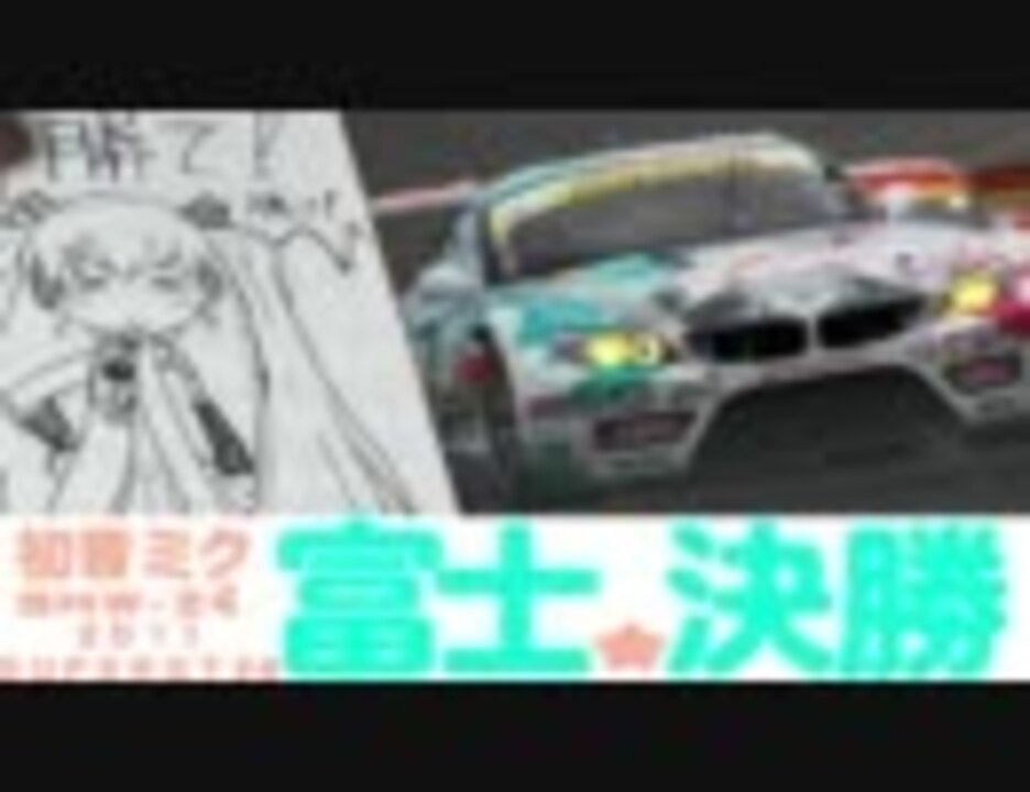 みんなの夢を載せて初音ミクBMW-Z4GT3が走ります。<b>予選は<a href="https://www.nicovideo.jp/watch/sm15572702" class="watch">sm15572702</a></b><br /><br />使用BGM序盤:DS-10「GRIP」<a href="https://www.nicovideo.jp/watch/sm6959732" class="watch">sm6959732</a>、レース前半:【初音ミク】 Do not go the wrong way <a href="https://www.nicovideo.jp/watch/sm15553399" class="watch">sm15553399</a><br />レース中盤:DRIVE ME~summer mix <a href="https://www.nicovideo.jp/watch/sm15197007" class="watch">sm15197007</a> レース終盤:Winning Road <a href="https://www.nicovideo.jp/watch/sm13518103" class="watch">sm13518103</a> <br />引用動画<br />1コーナ動画はwindmuhleサンから頂きました→<a href="http://ameblo.jp/windmuhle-ja/" target="_blank" rel="noopener nofollow">http://ameblo.jp/windmuhle-ja/</a> pit動画は<a href="https://www.nicovideo.jp/watch/sm15606254" class="watch">sm15606254</a>から拝借<br />写真はツイッターの#fightgsrタグ、2chモタスポ板ミクZ4応援スレより拝借しました、ありがとうございます。 <br /><br />ミクGTレース動画マイリスト<br />2011:初音ミクGSRxStudie_with_TeamUKYO <a href="https://www.nicovideo.jp/mylist/24756488" target="_blank" rel="noopener">mylist/24756488</a><br />2010:(ミクポル時代)初音ミクxGSRポルシェ <a href="https://www.nicovideo.jp/mylist/18184227" target="_blank" rel="noopener">mylist/18184227</a><br />2008-2009:初音ミク_Studie_GLAD_BMW_Z4 <a href="https://www.nicovideo.jp/mylist/12710924" target="_blank" rel="noopener">mylist/12710924</a>