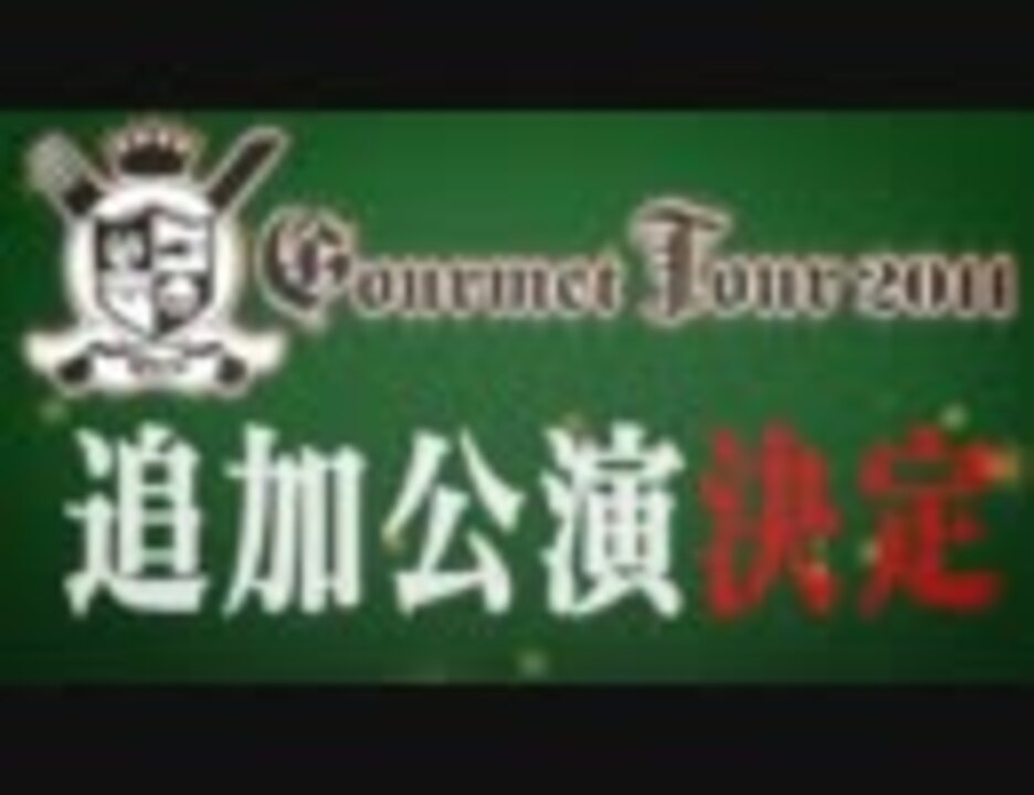 7月から10月にかけて行われた<br />Geroのソロライブ「Gero Gourmet Tour 2011 ~※ライブです~」の<br /><br /><font size="3" color="#ff0000">追加公演開催が決定!!!!</font><br /><br />----------<br /><font size="3"><b>■Gero Gourmet Tour 2011 ~※ライブです~<br />追加公演「コーストが空いていたから…」<br /><br />日時:11月5日(土)<br />開場16:30/開演17:30<br />会場:STUDIOCOAST(東京・新木場)<br /><br />チケット:オールスタンディング<br />3,000円(ドリンク代別途500)<br /><br />《WEB先行(抽選販売)》<br />抽選エントリー期間<br /><font color="red">2011年 10月 8日(土) 12:00 ~ 2011年 10月 18日(火) 23:59</font><br /></font></b><br /><br />チケット購入方法等の情報は公式サイトをご覧下さい⇒<a href="http://www.gero2525.jp/" target="_blank" rel="noopener nofollow">http://www.gero2525.jp/</a><br /><br />使用BGM:<br />Geroソロアルバム「Gourmet」より「The Bandits (The Six Little Bandits) 」<br />作詞・作曲・編曲:ゴム