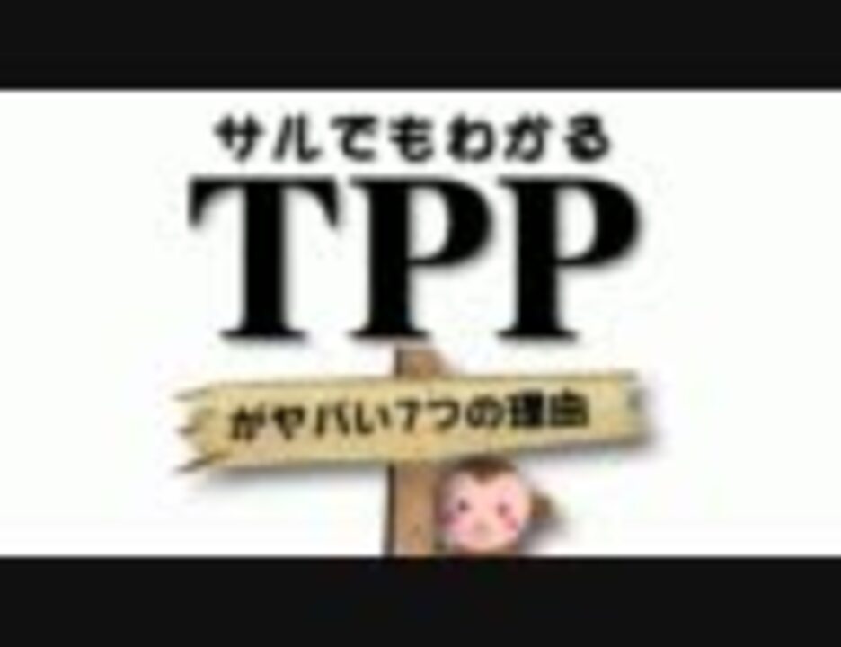 Youtubeから 元動画のURL: <a href="http://www.youtube.com/watch?v=CI8l71dSy_A" target="_blank" rel="noopener nofollow">http://www.youtube.com/watch?v=CI8l71dSy_A</a> GloriousJapanForever さんが 2011/11/05 にアップロード 『 Ver1. が完成しました。これにさらに内容を付け加えたヴァージョンも作っていきます。HDサイズ(テレビサイズ)版アップロードしました。 <a href="http://www1.axfc.net/uploader/Al/so/76747" target="_blank" rel="noopener nofollow">http://www1.axfc.net/uploader/Al/so/76747</a> ダウンロードして、DVD-Rに焼いて、近所のポスティングに利用してください。この動画はルナ・オーガニック・インスティテュートの安田美絵さんによる「サルでもわかるTPP」を宣伝する目的で作りました。TPPに関する分かりやすく詳しい情報がまとめられていますので、ぜひ安田さんのサイトを訪問してみてください。 <a href="http://luna-organic.org/tpp/tpp.html" target="_blank" rel="noopener nofollow">http://luna-organic.org/tpp/tpp.html</a> 私たちが今、何をすべきか、安田さんがまとめてくださっています。今すぐ行動! <a href="http://luna-organic.org/tpp/action.html" target="_blank" rel="noopener nofollow">http://luna-organic.org/tpp/action.html</a> 』
