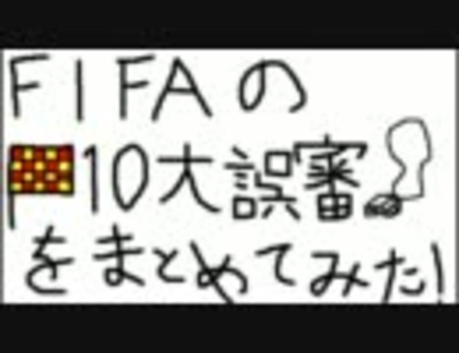 <font size=4><b>2015年10月16日:何故上がったww 生主やってます【co2834751】</b></font><br /><br />どうも、下手字です。<br />今回はFIFAが創立100周年を迎えたときに発表された10大誤審をまとめました。<br />ググってもどの場面かが出るだけで、映像をまとめて見ることは<br />難しかったので作りました。少し画質がお粗末ですが、お許しください…。<br />今回を機に、サッカー関係であまり取り上げられないテーマの動画でも作ろうかなと思います。<br />他のサッカー動画【<a href="https://www.nicovideo.jp/mylist/20028768" target="_blank" rel="noopener">mylist/20028768</a>】 BGM:Yoshi's I'sland Sound trackから「Overworld」<br />コメントが表示されない方はこちらから→【<a href="https://www.nicovideo.jp/watch/sm16314243" class="watch">sm16314243</a>】