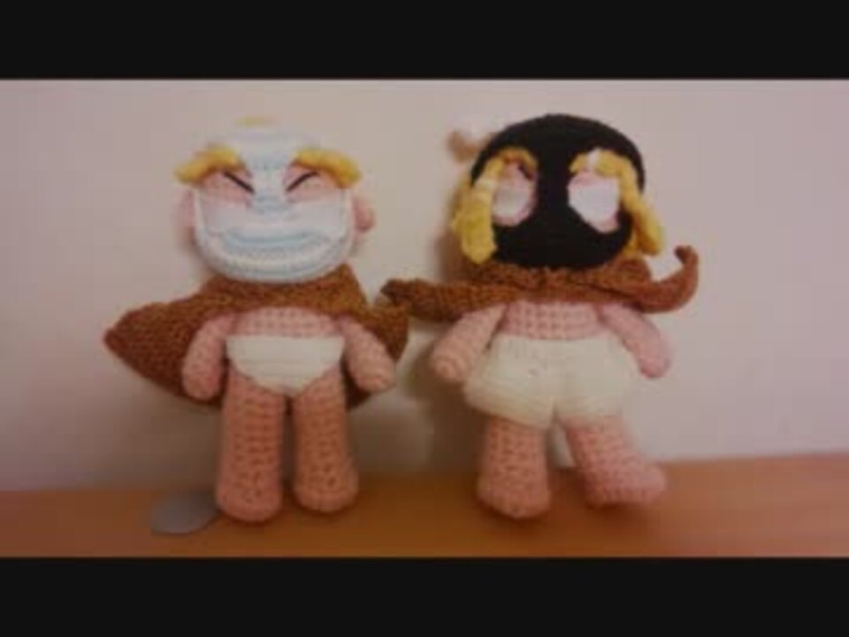 <b>ニコニコ手芸部カテゴリの晴れの門出を祝して、かんぱぁい!!</b><br /><br />これを記念にパンツ祭が開催されると聞いたので、ニコニコ手芸部のさらなる発展を願って僭越ながら参加させていただきます!<br /><br />という訳で今回はINARING☆マーチのリンとレンを編みぐるんでみました。<br />パンツと聞いてパッと思い浮かんだのよ!もう作るっきゃないでしょう(`・ω・´)<br />では、どうぞよろしくお願いします。<br /><br />■素敵な本家様:<a href="https://www.nicovideo.jp/watch/nm8093417" class="watch">nm8093417</a><br />■可愛いPV:<a href="https://www.nicovideo.jp/watch/sm10627351" class="watch">sm10627351</a><br />■お借りしたBGM:<a href="https://commons.nicovideo.jp/works/nc2003" target="_blank" rel="noopener">nc2003</a>