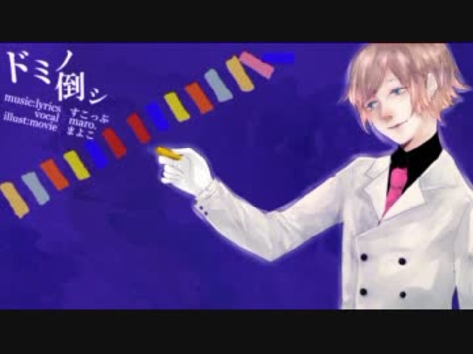 □21歳になりましたmaro.です。<br> すこっぷさんのドミノ倒シ(<a href="https://www.nicovideo.jp/watch/sm13306896" class="watch">sm13306896</a>)をYuzukiのギターアレンジで歌わせていただきました。<br> 今回はコーラスでりょーくんがお手伝いしてくれました。協力してくださった皆様に感謝。<br><br>□acoustic arrange<br>Yuzuki Riyu <a href="https://www.nicovideo.jp/mylist/20670022" target="_blank" rel="noopener">mylist/20670022</a><br><br>□illustration<br>まよこ <a href="https://www.nicovideo.jp/mylist/19842792" target="_blank" rel="noopener">mylist/19842792</a><br><br>□mix<br>こなたP <a href="https://www.nicovideo.jp/mylist/24137372" target="_blank" rel="noopener">mylist/24137372</a><br><br>□encode<br>鹿乃 <a href="https://www.nicovideo.jp/mylist/16997570" target="_blank" rel="noopener">mylist/16997570</a><br><br>□chorus<br>りょーくん <a href="https://www.nicovideo.jp/mylist/21309091" target="_blank" rel="noopener">mylist/21309091</a><br><br>□vocal<br>maro. <a href="https://www.nicovideo.jp/mylist/17636667" target="_blank" rel="noopener">mylist/17636667</a> co202240<br><a href="https://twitter.com/maro_yum" target="_blank" rel="noopener nofollow">https://twitter.com/maro_yum</a><br><br>□【maro.×イナカモノ】青いベンチ-AcousticArrange-【Yuzuki Riyu】<a href="https://www.nicovideo.jp/watch/sm14311619" class="watch">sm14311619</a>