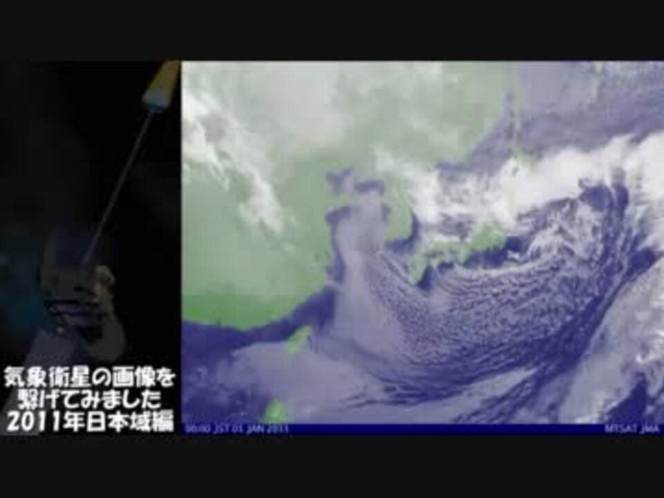 2011年に投稿した"繋げてみました"シリーズの総集編、<br />こちらは運輸多目的衛星ひまわりが撮影した日本域画像になります。<br /><br />字幕データに間違いがあった場合は、御免なさい…(汗)<br /><br />■映像は気象庁で公開されている画像を動画化しています<br /> 気象庁 <a href="http://www.jma.go.jp/" target="_blank" rel="noopener nofollow">http://www.jma.go.jp/</a><br />■BGMは作者様ご本人より音源を提供して頂きました<br /> 『ひまわり Good Night Version』インスト版 <br /> 原曲<a href="https://www.nicovideo.jp/watch/sm15075032" class="watch">sm15075032</a><br /> 作詞作曲:SHO/キセノンPさん マスタリング:ケィさん<br /> イラスト:ぎヴちょこさん<br /><br />■2011年まとめ動画 全球編<a href="https://www.nicovideo.jp/watch/sm16590511" class="watch">sm16590511</a> 番外編<a href="https://www.nicovideo.jp/watch/sm16493039" class="watch">sm16493039</a><br /> マイリスト:<a href="https://www.nicovideo.jp/mylist/21644629" target="_blank" rel="noopener">mylist/21644629</a><br /><font size="1" color="#666666">※南鳥島,富士山,南極昭和基地観測の一部データは、記載情報から除外。</font>