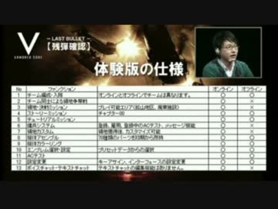 アーマード・コア(ARMORED CORE)Ⅴ USTREAM配信<br />【ACV】Midnight LIVE 1/16 - LAST BULLET -「残彈確認せり」 part3<br />途中ブチ切れてますが、UST落ちたので…<br />OP →<a href="https://www.nicovideo.jp/watch/sm16713683" class="watch">sm16713683</a> OPPV高画質版→<a href="https://www.nicovideo.jp/watch/sm16727830" class="watch">sm16727830</a><br />part 1→<a href="https://www.nicovideo.jp/watch/sm16713872" class="watch">sm16713872</a><br />part 2→<a href="https://www.nicovideo.jp/watch/sm16714057" class="watch">sm16714057</a><br />part 3→ココ<br />part 4→<a href="https://www.nicovideo.jp/watch/sm16715219" class="watch">sm16715219</a><br />part 5→<a href="https://www.nicovideo.jp/watch/sm16715343" class="watch">sm16715343</a><br />part 6→<a href="https://www.nicovideo.jp/watch/sm16715489" class="watch">sm16715489</a><br />part 7→<a href="https://www.nicovideo.jp/watch/sm16715600" class="watch">sm16715600</a><br />part 8→<a href="https://www.nicovideo.jp/watch/sm16715819" class="watch">sm16715819</a><br />part 9→<a href="https://www.nicovideo.jp/watch/sm16715895" class="watch">sm16715895</a><br />part10→<a href="https://www.nicovideo.jp/watch/sm16715946" class="watch">sm16715946</a><br />【ACV】アーマード・コアⅤ動画 <a href="https://www.nicovideo.jp/mylist/30043150" target="_blank" rel="noopener">mylist/30043150</a>