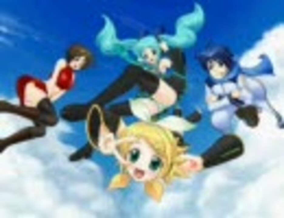 <b>鏡音レンも緊急参戦!→【<a href="https://www.nicovideo.jp/watch/sm1691118" class="watch">sm1691118</a>】</b>リン発表時期に海外出張していて早描きに参戦できなかったので<br />4兄妹を描いてみました、書いてる間になんか色を見たら戦隊モノに見えてきたので<br />ロゴまで描きました<br />線画【<a href="https://www.nicovideo.jp/watch/sm1662661" class="watch">sm1662661</a>】<br />過去の制作【<a href="https://www.nicovideo.jp/mylist/3766024" target="_blank" rel="noopener">mylist/3766024</a>】<br /><br />うp主サイト <a href="http://www17.ocn.ne.jp/~e_motion/" target="_blank" rel="noopener nofollow">http://www17.ocn.ne.jp/~e_motion/</a><br />どうしても高画質にはならないorz サイトに壁紙ありますどうぞ<br />制作時間<br />ミク 1時40分<br />リン 1時間半<br />カイト1時間<br />メイコ1時間半<br />空 1時間<br /><br />お借りした音楽<br />ストラトスフィア【<a href="https://www.nicovideo.jp/watch/sm1613775" class="watch">sm1613775</a>】<br />アイドルマスタ→トスタ→【<a href="https://www.nicovideo.jp/watch/sm1298803" class="watch">sm1298803</a>】<br />キミと出逢ってから【<a href="https://www.nicovideo.jp/watch/sm1636686" class="watch">sm1636686</a>】<br />美しければそれでいい【<a href="https://www.nicovideo.jp/watch/sm1566915" class="watch">sm1566915</a>】<br />輝く希望の謳【<a href="https://www.nicovideo.jp/watch/sm1619091" class="watch">sm1619091</a>】</b>