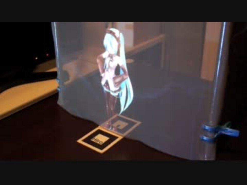 また網戸で遊んでみた。前の動画<a href="https://www.nicovideo.jp/watch/sm16758170" class="watch">sm16758170</a>。<br /><br />ARToolKitを使って、頭にUSBカメラを装着した観察者の頭部位置を求め、<br />その位置を視点位置とした映像をプロジェクタで網に投影しています。<br /><br />お借りしたもの。<br />ARToolKit_MMD:co38890<br />BGM:<a href="https://www.nicovideo.jp/watch/sm8233245" class="watch">sm8233245</a><br />ミクさんのモデル:<a href="https://www.nicovideo.jp/watch/sm11205201" class="watch">sm11205201</a><br />ミクさんのモーション:<a href="https://www.nicovideo.jp/watch/sm14365789" class="watch">sm14365789</a><br />アミッドスクリーンについては<a href="https://www.nicovideo.jp/watch/sm15491396" class="watch">sm15491396</a>を参考にさせていただきました。<br /><br />これまでにつくったもの<a href="https://www.nicovideo.jp/mylist/7023672" target="_blank" rel="noopener">mylist/7023672</a>
