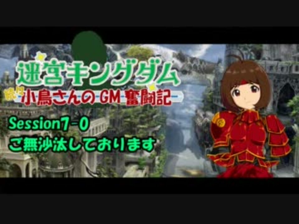 お久しぶりです、ブリッツPです。<br />大変お待たせしました、もう片方のシリーズが完結したので半年振りに再開します。<br />こちらもキチンと完結させる予定なので、もうしばらくお付き合い頂けると幸いです。<br /><br />Session6-6:<a href="https://www.nicovideo.jp/watch/sm15594513" class="watch">sm15594513</a><br />Session7-1:<a href="https://www.nicovideo.jp/watch/sm16940725" class="watch">sm16940725</a><br /><br />続・小鳥さんのGM奮闘記:<a href="https://www.nicovideo.jp/mylist/17707796" target="_blank" rel="noopener">mylist/17707796</a><br />続々・小鳥さんのGM奮闘記:<a href="https://www.nicovideo.jp/mylist/24774299" target="_blank" rel="noopener">mylist/24774299</a><br /><br />◎宣伝<br />サザエPの「闇を拓く双子星(やみ☆ふた)」:<a href="https://www.nicovideo.jp/mylist/21906098" target="_blank" rel="noopener">mylist/21906098</a><br />ウマトカゲPの「M@KE YOU KINGDOM」:<a href="https://www.nicovideo.jp/mylist/20048490" target="_blank" rel="noopener">mylist/20048490</a><br />PON!の人の「迷宮わぁい!」:<a href="https://www.nicovideo.jp/mylist/25493046" target="_blank" rel="noopener">mylist/25493046</a><br />