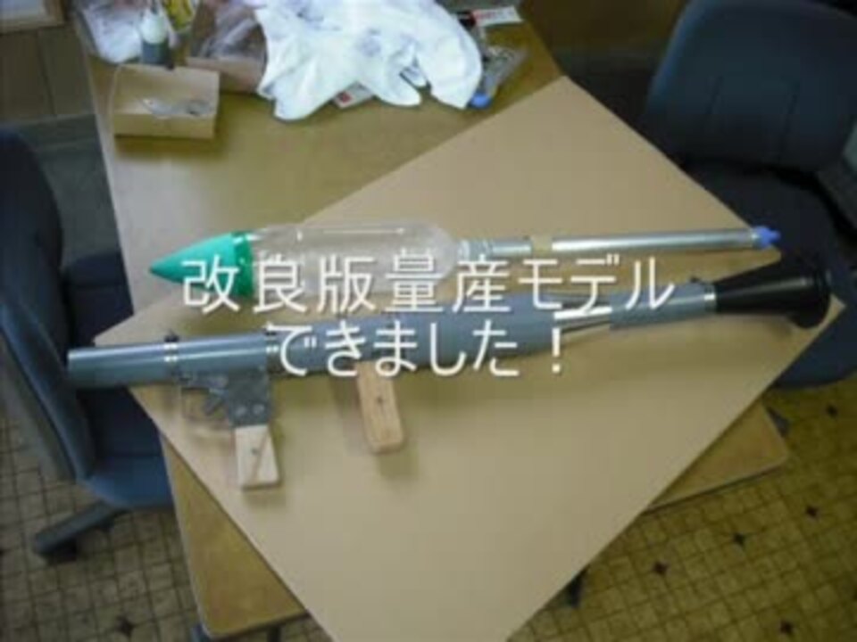 夏に作ったペットボトルロケットランチャーの改良版を作りました。トリガーのレスポンスや弾頭の改良などでより撃ちやすくなりました。弾頭の姿勢さえ改良できればかなり飛びそうです。顔を覆っているのは寒くて濡れたくないからで、他意はありません。あるみ屋ブログはこちら。<a href="http://maruta.be/alumiya" target="_blank" rel="noopener nofollow">http://maruta.be/alumiya</a>