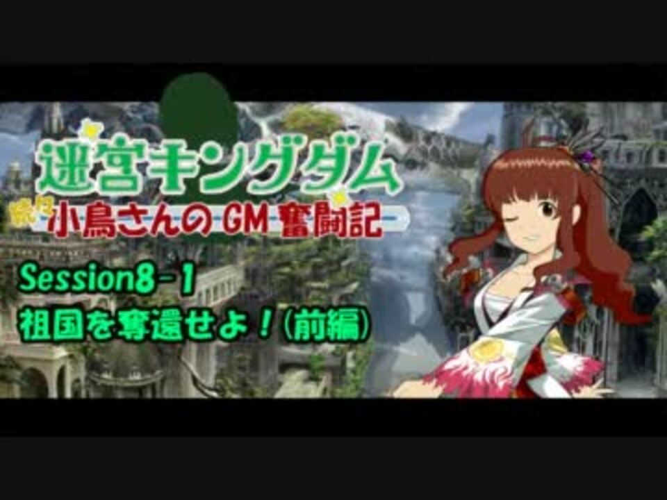こんばんは、ブリッツPです。<br />たぶん次か次の次で終わりです。<br /><br />Session7-3:<a href="https://www.nicovideo.jp/watch/sm16961667" class="watch">sm16961667</a><br /><b>Session8-2(最終回):<a href="https://www.nicovideo.jp/watch/sm16989704" class="watch">sm16989704</a>(2/16更新)</b><br /><br />続・小鳥さんのGM奮闘記:<a href="https://www.nicovideo.jp/mylist/17707796" target="_blank" rel="noopener">mylist/17707796</a><br />続々・小鳥さんのGM奮闘記:<a href="https://www.nicovideo.jp/mylist/24774299" target="_blank" rel="noopener">mylist/24774299</a><br /><br />◎宣伝<br />サザエPの「闇を拓く双子星(やみ☆ふた)」:<a href="https://www.nicovideo.jp/mylist/21906098" target="_blank" rel="noopener">mylist/21906098</a><br />ウマトカゲPの「M@KE YOU KINGDOM」:<a href="https://www.nicovideo.jp/mylist/20048490" target="_blank" rel="noopener">mylist/20048490</a><br />PON!の人の「迷宮わぁい!」:<a href="https://www.nicovideo.jp/mylist/25493046" target="_blank" rel="noopener">mylist/25493046</a><br />