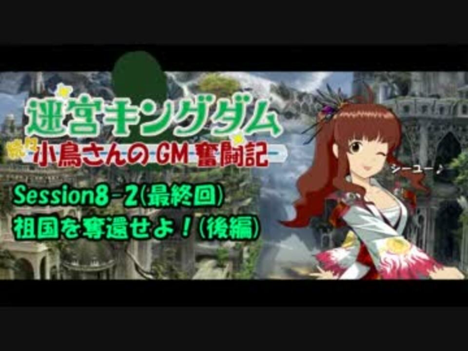 こんばんは、ブリッツPです。<br />突然ですが今回を持ってアイマスPとしての活動を休止させて頂きます。<br />4月から社会人となるため、時間の確保が難しいことが主な理由です。<br />更新するとしても長編ではなく短編、もしくはアイマスと関係ない形での投稿になるかと思われます。<br />2009年のデビュー以来、皆様の応援で更新意欲をかき立てられ、ここまでやってこれました。<br />ご試聴下さった方々、支援絵を描いて下さった方々、宣伝して下さった方々…。<br />当方の数々の拙い作品に長らくのご愛顧、本当にありがとうございました。<br /><br />Session8-1:<a href="https://www.nicovideo.jp/watch/sm16983116" class="watch">sm16983116</a><br /><br /><font size=3><b>次回作(※ゆっくり実況):<a href="https://www.nicovideo.jp/watch/sm17009899" class="watch">sm17009899</a></b></font><br /><br />続・小鳥さんのGM奮闘記:<a href="https://www.nicovideo.jp/mylist/17707796" target="_blank" rel="noopener">mylist/17707796</a><br />続々・小鳥さんのGM奮闘記:<a href="https://www.nicovideo.jp/mylist/24774299" target="_blank" rel="noopener">mylist/24774299</a><br /></font>