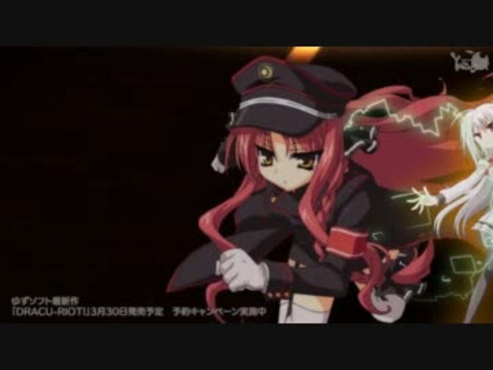 <b>DRACU-RIOT!</b> <br /> <b>発売日</b>:2012/03/30<br /> <b>ジャンル</b>:<br /><b>原画</b>:むりりん、こぶいち、こもわた遙華(SD原画)<br /> <b>シナリオ</b>:天宮りつ、姫ノ木あく、J・さいろー<br /> <b>ボイス</b>:鮎川ひなた(稲叢莉音)、金松由花(大房ひよ里)、かわしまりの(アンナ・レティクル)、夏野こおり(矢来美羽)、青葉りんご(荒神小夜)、ワンモアチャンス(扇元樹)、古河徹人(倉端直太)、高井戸雫(淡路萌香)、佐藤しずく(布良梓)、浅野ゆず(ニコラ・ケフェウス)、鈴木恵莉央(エリナ・オレゴヴナ・アヴェーン)、デビルかとう(枡形兵馬)<br /> <br />マイリスト→<a href="https://www.nicovideo.jp/mylist/19753929" target="_blank" rel="noopener">mylist/19753929</a><br /><br /><b>フルHD高画質→<a href="https://www.nicovideo.jp/watch/sm17068006" class="watch">sm17068006</a></b>