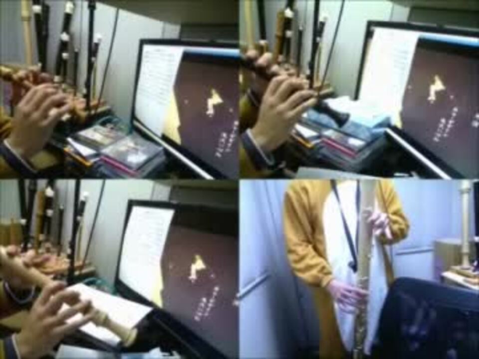 顔出し微妙って事なんで元戻します。<br /><br />こんばんは、ヒロカズです。<br />OP変わりましたっという事で<br />偽物語 つきひフェニックスOP【白金ディスコ】をリコーダー4重奏してみました。<br />編成はソプラノ、アルト、テナー、グレートバスです。<br />これもまた名曲ですね。<br /><br />2012年冬アニメ吹いた曲↓<br />アマガミSS+:<a href="https://www.nicovideo.jp/watch/sm16627589" class="watch">sm16627589</a><br />リコーダーとランドセル OP:<a href="https://www.nicovideo.jp/watch/sm16627486" class="watch">sm16627486</a><br />リコランFull:<a href="https://www.nicovideo.jp/watch/sm17208172" class="watch">sm17208172</a><br />ミルキィホームズ2幕 OP:<a href="https://www.nicovideo.jp/watch/sm16637176" class="watch">sm16637176</a><br />偽物語 OP1:<a href="https://www.nicovideo.jp/watch/sm16638309" class="watch">sm16638309</a><br />偽物語 OP2:<a href="https://www.nicovideo.jp/watch/sm16706975" class="watch">sm16706975</a><br />偽物語 ED:<a href="https://www.nicovideo.jp/watch/sm17073012" class="watch">sm17073012</a><br />ゼロの使い魔F OP:<a href="https://www.nicovideo.jp/watch/sm16645127" class="watch">sm16645127</a><br />夏待ち OP:<a href="https://www.nicovideo.jp/watch/sm16665220" class="watch">sm16665220</a><br />パパ聞き OP:<a href="https://www.nicovideo.jp/watch/sm16672888" class="watch">sm16672888</a><br /><br />他に吹いた曲→<a href="https://www.nicovideo.jp/mylist/10045214" target="_blank" rel="noopener">mylist/10045214</a><br />