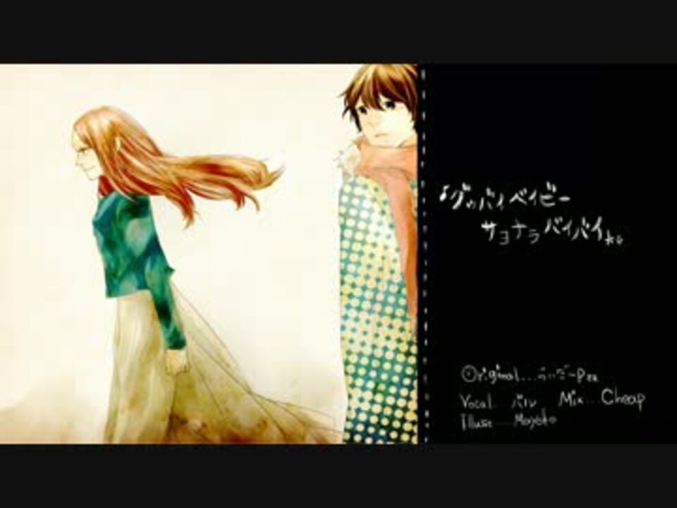 どうもーバル子ですー!<br /><br />今回はらいだーP様の楽曲を歌わせて頂きました(*'ω'*)<br />ぐっばいべいびー!さよならばいばーい!<br /><font size="7" color="#ff6600"><b>ぽっ★</b></font><br /><br />□原曲様 ⇒<a href="https://www.nicovideo.jp/watch/sm15606512" class="watch">sm15606512</a><br />□MIX ⇒ Cheapさん(<a href="https://www.nicovideo.jp/mylist/8988960" target="_blank" rel="noopener">mylist/8988960</a>)<br />□イラスト・動画⇒まよこ(<a href="https://www.nicovideo.jp/mylist/19842792" target="_blank" rel="noopener">mylist/19842792</a>)<br />□special thanks ⇒7@(<a href="https://www.nicovideo.jp/user/10114232" target="_blank" rel="noopener">user/10114232</a>)<br /><br /><br />□バルリスト⇒<a href="https://www.nicovideo.jp/mylist/14991165" target="_blank" rel="noopener">mylist/14991165</a> <br />前作【想像フォレスト】⇒<a href="https://www.nicovideo.jp/watch/sm16942082" class="watch">sm16942082</a> 次作【君のいない世界】⇒<a href="https://www.nicovideo.jp/watch/sm17537472" class="watch">sm17537472</a><br />
