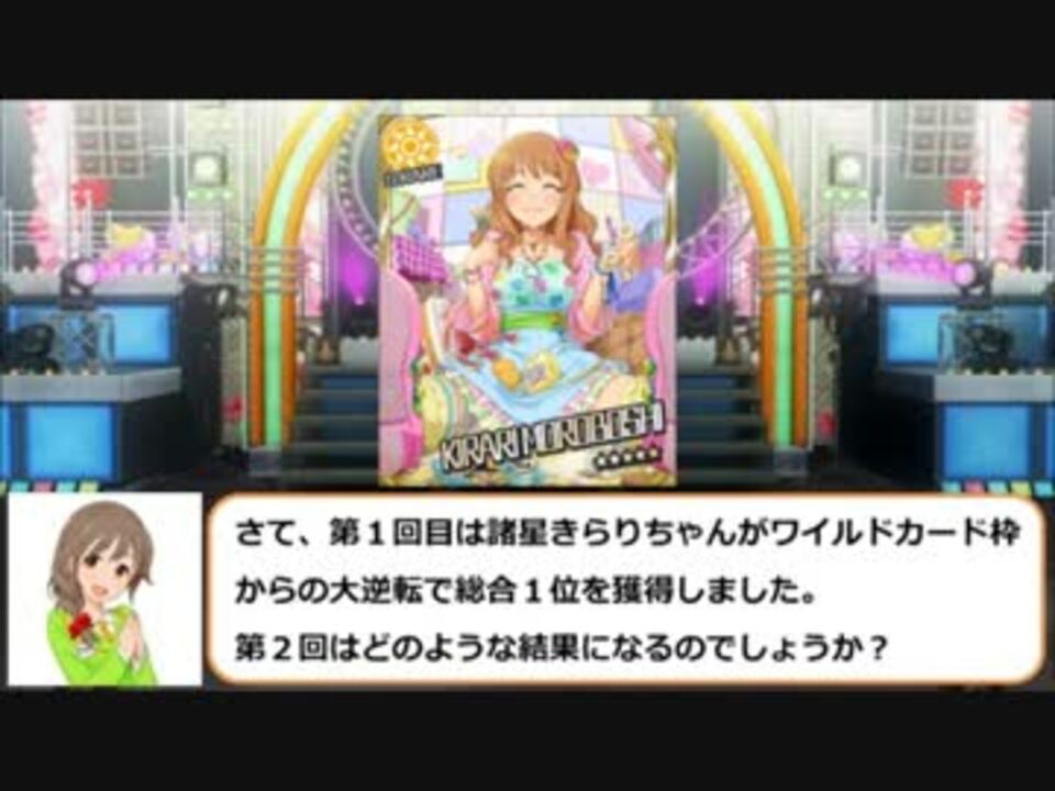 モバゲーのアイドルマスターシンデレラガールズの非公式人気投票です。<br />当人気投票は2/1~14(予選)2/15~29(決勝)で行われました。<br />(勝手にシンデレラコンテスト委員会ブログ)<a href="http://kccc.blog.fc2.com/" target="_blank" rel="noopener nofollow">http://kccc.blog.fc2.com/</a><br />第3回勝手にシンデレラコンテスト開催中!<br />予選 3/2~3/15<br />決勝 3/16~3/31<br />(第3回勝手にシンデレラコンテスト投票所)<a href="http://www.dounano.net/answer/Hlsch6339.html" target="_blank" rel="noopener nofollow">http://www.dounano.net/answer/Hlsch6339.html</a><br />第1回目の結果 <a href="https://www.nicovideo.jp/watch/sm16890592" class="watch">sm16890592</a> 第3回目(予選) <a href="https://www.nicovideo.jp/watch/sm17275960" class="watch">sm17275960</a> (決勝)<a href="https://www.nicovideo.jp/watch/sm17489358" class="watch">sm17489358</a><br />