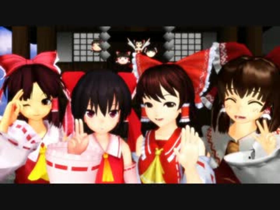 表情練習というものを静画でobakeさん(百鬼夜行P)<a href="https://seiga.nicovideo.jp/seiga/im1808165" target="_blank" rel="noopener">im1808165</a>とナルバジン<a href="https://seiga.nicovideo.jp/seiga/im1794140" target="_blank" rel="noopener">im1794140</a><br />がやっていて楽しそうだなー俺もやろーと思い<br />何故か動画にしたら馬鹿みたいに時間かかったぜ!!!<br /><br />nya式博麗霊夢バージョンアップしました<br />→<a href="http://homepage3.nifty.com/knuko/mmd/mmdIndex.html" target="_blank" rel="noopener nofollow">http://homepage3.nifty.com/knuko/mmd/mmdIndex.html</a><br /><br /><br />円条式霊夢/にがもん式霊夢/ISAO式霊夢/nya式霊夢<br />博霊霊夢N→nya様/sizu式ゆっくり霊夢(左)/z7def式ゆっくり霊夢(右)/nya式ゆっくり霊夢(中央)<br /><br />博麗神社→nya様<br />Diffusion7→そぼろ様/AdultShader→データP様<br />MikuMikuDance/MikuMikuEfect/AVIutl<br /><br />曲:剣の舞→<a href="https://www.nicovideo.jp/watch/sm14073137" class="watch">sm14073137</a><br /><br />まいりす<br />モーション自作系→<a href="https://www.nicovideo.jp/mylist/19570094" target="_blank" rel="noopener">mylist/19570094</a> モーション借用系→<a href="https://www.nicovideo.jp/mylist/25418342" target="_blank" rel="noopener">mylist/25418342</a> AA一行版専用→<a href="https://www.nicovideo.jp/mylist/25636416" target="_blank" rel="noopener">mylist/25636416</a><br /><br />P名頂くかどうか考えてたら消えたw保留という事でw