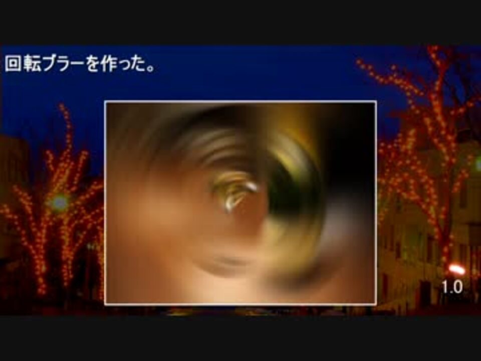 回転ブラー+おまけです。<br />更新版が↓こちらにあります。<br /><a href="http://www.nicovideo.jp/watch/sm31700000" target="_blank" rel="noopener nofollow">http://www.nicovideo.jp/watch/sm31700000</a><br /><br />音楽(フリー素材)→プラスチックアドベンチャー<br /><br />自作AviUtlスクリプト→<a href="https://www.nicovideo.jp/mylist/25550138" target="_blank" rel="noopener">mylist/25550138</a><br />AviUtlコミュ→co556462<br />さつきさんのユーザー記事→<a href="http://dic.nicovideo.jp/u/2787743" target="_blank" rel="noopener nofollow">http://dic.nicovideo.jp/u/2787743</a><br />AviUtlスクリプト Wiki→<a href="http://aviutlscript.wiki.fc2.com/" target="_blank" rel="noopener nofollow">http://aviutlscript.wiki.fc2.com/</a> <br />