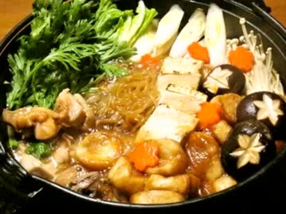 レシピ:<a href="http://cookpad.com/recipe/1032826" target="_blank" rel="noopener nofollow">http://cookpad.com/recipe/1032826</a><br /><br />鶏肉シリーズ:<a href="https://www.nicovideo.jp/mylist/30749678" target="_blank" rel="noopener">mylist/30749678</a><br />鍋料理シリーズ:<a href="https://www.nicovideo.jp/mylist/33897084" target="_blank" rel="noopener">mylist/33897084</a><br /><br /><br />コミュニティ:co1105383 マイリスト:<a href="https://www.nicovideo.jp/mylist/23892962" target="_blank" rel="noopener">mylist/23892962</a> 特選動画:<a href="https://www.nicovideo.jp/mylist/27326728" target="_blank" rel="noopener">mylist/27326728</a><br /><br />【参考原価】<br />鶏もも肉800g 624円、ネギ2本 62円、白菜1/4株 128円、春菊1束 158円、シメジ1P 128円、椎茸1P 156円<br />えのき1P 99円、焼き豆腐1丁 78円、白滝1P 56円、麩1袋 128円<br />人参1/4本 30円、もち5個 150円、うどん5玉 400円<br />合計 2192円(5人分) 1人前 439円 2012年3月25日(日)夕食<br /><br />ブログ<br /><a href="http://ameblo.jp/cooking-s-papa/" target="_blank" rel="noopener nofollow">http://ameblo.jp/cooking-s-papa/</a><br />ツイッター<br /><a href="http://twitter.com/s_papa777" target="_blank" rel="noopener nofollow">http://twitter.com/s_papa777</a>