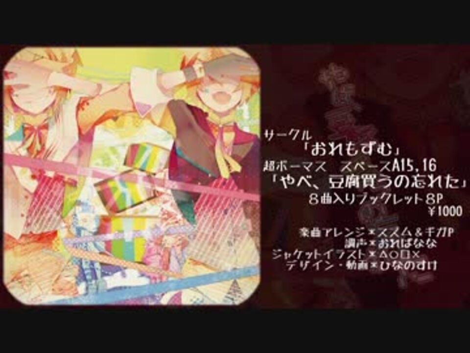 <br /> <br /> とっても素敵にプリティーキチカワアルバムʕ̡̢̡ʘ̅͟͜͡ʘ̲̅ʔ̢̡̢<br /> <br /> <br /> ☆調声☆:おればなな→<a href="https://www.nicovideo.jp/mylist/5843220" target="_blank" rel="noopener">mylist/5843220</a><br /> イラスト:△○□×→<a href="https://www.nicovideo.jp/user/21427527" target="_blank" rel="noopener">user/21427527</a><br /> デザイン:ひなのすけ→<a href="https://www.nicovideo.jp/mylist/8953275" target="_blank" rel="noopener">mylist/8953275</a><br /> アレンジ:ギガ→<a href="https://www.nicovideo.jp/mylist/7894586" target="_blank" rel="noopener">mylist/7894586</a><br /> アレンジ:スズム→<a href="https://www.nicovideo.jp/mylist/20737161" target="_blank" rel="noopener">mylist/20737161</a><br /> マスタリング:yasu→<a href="https://www.nicovideo.jp/mylist/24600477" target="_blank" rel="noopener">mylist/24600477</a><br /> ギター(7曲目):ぎぶそん→<a href="https://www.nicovideo.jp/mylist/12825401" target="_blank" rel="noopener">mylist/12825401</a><br /> <br /> 4/28-29<br /> THE VOC@LOiD 超 M@STER20<br /> A15-16<br />「おれもずむ」でボーカロイドカバーアレンジアルバムを頒布いたします。<br /><br />会場頒布価格/1000円<br />