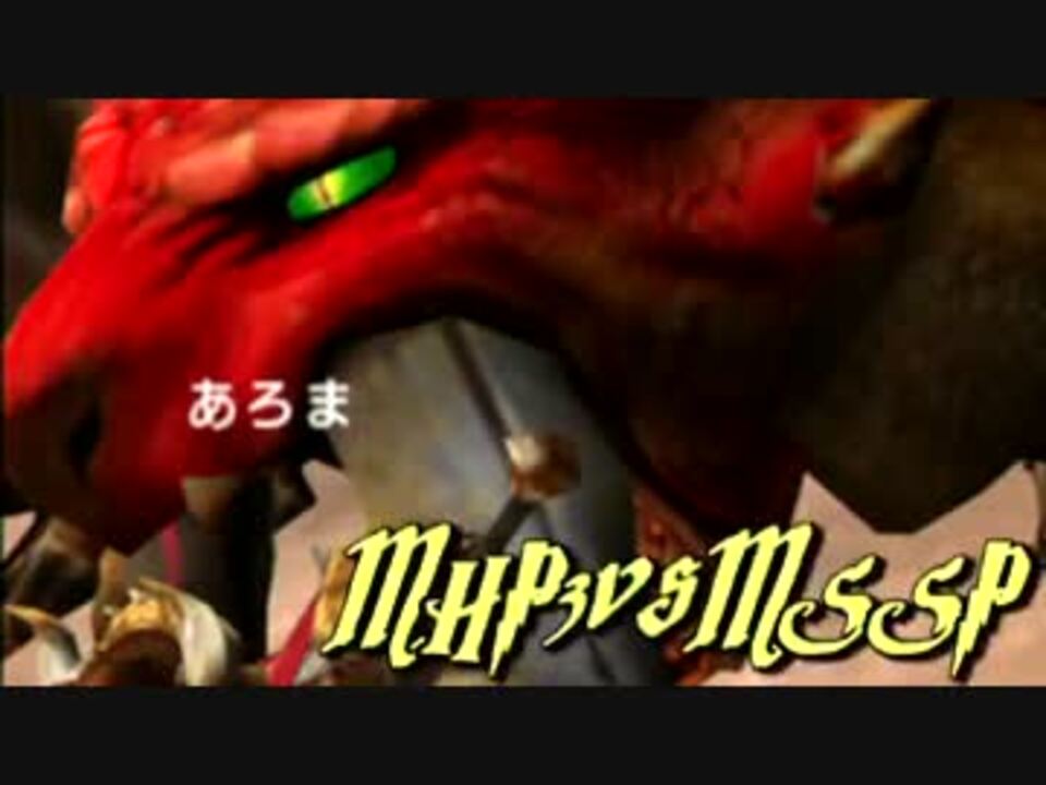 全世界のみんな、モンスターハンターてかポータブル3!!さらにHD!!!<br /> 今回は闘技場にて亜種どもと5番勝負を繰り広げます!<br /> こんな小さな闘技場に亜種を5匹も詰め込んだ野朗が最強だと思います!<br /> ☆今回のメンバー紹介<br /> ★KIKKUN-MK-Ⅱ→特攻隊長。未来を見据えるハゲ。<br /> ★FB777→動画の操作主。親知らずを抜く事は試練だ。<br /> ★あろま→ニセ癒し系。金環日食を見たいらしい。<br />★EOHEOH→天然要員。金柑を食べたいらしい。<br /> MSSP最新動画ブログ、KIKKUNのHP↓<br /> <a href="http://mssproject.blog89.fc2.com/" target="_blank" rel="noopener nofollow">http://mssproject.blog89.fc2.com/</a><br /> <a href="http://kikkunmk2website.nengu.jp/" target="_blank" rel="noopener nofollow">http://kikkunmk2website.nengu.jp/</a><br /> 新コミュ専動画~KIKKUNの覚醒編~編→<a href="https://www.nicovideo.jp/watch/1325294692" class="watch">watch/1325294692</a><br />Part1→<a href="https://www.nicovideo.jp/watch/sm12952913" class="watch">sm12952913</a><br />前回→<a href="https://www.nicovideo.jp/watch/sm17490546" class="watch">sm17490546</a> 次回→<a href="https://www.nicovideo.jp/watch/sm17791438" class="watch">sm17791438</a><br /> 各種マイリスト→<a href="https://www.nicovideo.jp/user/13983983" target="_blank" rel="noopener">user/13983983</a><br /> MHP3実況マイリスト→<a href="https://www.nicovideo.jp/mylist/22488507" target="_blank" rel="noopener">mylist/22488507</a><br />