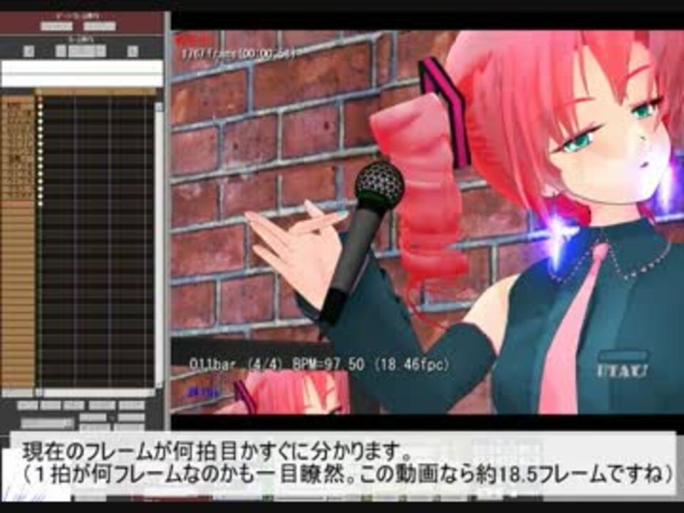 ProjectDIVAに慣れている方!MMDでBPM表示があると便利だと思いませんか?<br />あちこち探してみたのですが見つからなかったので自作してみました。<br />そぼろ様の「MikuMikuTelop」を利用させて頂きました!!!<br />※サンプルのPV(<a href="https://www.nicovideo.jp/watch/sm17664983" class="watch">sm17664983</a>)はこのマクロを初めて活用したものですが、ぱんちらが苦手な方はごめんなさい!<br />(マダムごめんなさい!><)<br />※DIVAで良くやる手法のBPMを倍にれば半拍も判別可能です<br /><br /><font color="red">2012/05 <b>おたもん様がエフェクト化して下さいました!</b></font>ヾ(≧▽≦)/→<a href="https://www.nicovideo.jp/watch/sm17915966" class="watch">sm17915966</a><br />※更に改良して下さいました<br /> ◆YO様→<a href="https://www.nicovideo.jp/watch/sm18390800" class="watch">sm18390800</a><br /> ◆akira noguchi様→<a href="https://www.nicovideo.jp/watch/sm20639071" class="watch">sm20639071</a><br />本当にありがとうございます!><<br />★2012/11 エフェクト化して頂けたので配布終了させて頂きました<br />