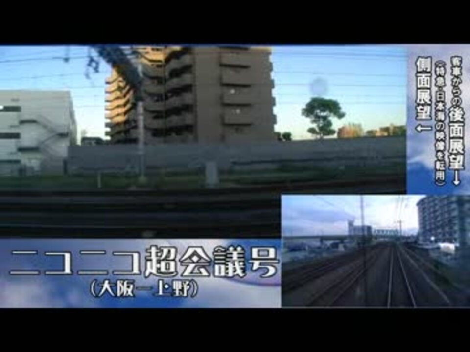 ニコニコ超会議号で撮影したものを、徐々にうpしていきます。<br />超会議号の側面展望に、「日本海」で撮影した後面展望をプラスしています。<br />恐らく側面と後面はズレていると思いますが、ご了承下さい。速度は日本海側を再生速度98%にしてあります。<br /><br />通常時の風景は昼:<a href="https://www.nicovideo.jp/watch/sm13261566" class="watch">sm13261566</a>(しなの)夜:<a href="https://www.nicovideo.jp/watch/sm17259525" class="watch">sm17259525</a>(日本海)をご覧下さい。<br />前:<a href="https://www.nicovideo.jp/watch/sm17677958" class="watch">sm17677958</a> 後:<a href="https://www.nicovideo.jp/watch/sm17677551" class="watch">sm17677551</a><br /><br />寝台列車・ブルートレイン別館→<a href="https://www.nicovideo.jp/mylist/30549645" target="_blank" rel="noopener">mylist/30549645</a>前面展望→<a href="https://www.nicovideo.jp/mylist/8148525" target="_blank" rel="noopener">mylist/8148525</a>&<a href="https://www.nicovideo.jp/mylist/9961604" target="_blank" rel="noopener">mylist/9961604</a>&<a href="https://www.nicovideo.jp/mylist/19397711" target="_blank" rel="noopener">mylist/19397711</a>&<a href="https://www.nicovideo.jp/mylist/10367690" target="_blank" rel="noopener">mylist/10367690</a>&<a href="https://www.nicovideo.jp/mylist/10814163" target="_blank" rel="noopener">mylist/10814163</a>&<a href="https://www.nicovideo.jp/mylist/10006385" target="_blank" rel="noopener">mylist/10006385</a>&<a href="https://www.nicovideo.jp/mylist/6587395" target="_blank" rel="noopener">mylist/6587395</a>&<a href="https://www.nicovideo.jp/mylist/9304817" target="_blank" rel="noopener">mylist/9304817</a> 一覧→<a href="https://www.nicovideo.jp/user/5903512" target="_blank" rel="noopener">user/5903512</a>