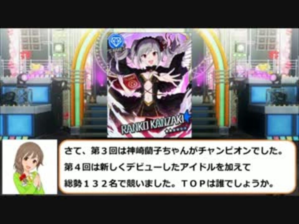モバゲーのアイドルマスターシンデレラガールズの非公式人気投票です。<br />当人気投票は4/1~14(予選)4/15~30(決勝)で行われました。<br />(勝手にシンデレラコンテスト委員会ブログ)<a href="http://kccc.blog.fc2.com/" target="_blank" rel="noopener nofollow">http://kccc.blog.fc2.com/</a><br />モバマスアンケート「勝手にグッジョブ」開催中<br />5/1~5/31<br />(勝手にグッジョブ投票所)<a href="http://www.dounano.net/answer/YGVsY6570.html" target="_blank" rel="noopener nofollow">http://www.dounano.net/answer/YGVsY6570.html</a><br />第1回目の結果 <a href="https://www.nicovideo.jp/watch/sm16890592" class="watch">sm16890592</a> 第2回目の結果 <a href="https://www.nicovideo.jp/watch/sm17195082" class="watch">sm17195082</a> 第3回目の結果 <a href="https://www.nicovideo.jp/watch/sm17489358" class="watch">sm17489358</a><br />第4回目予選結果 <a href="https://www.nicovideo.jp/watch/sm17606152" class="watch">sm17606152</a>
